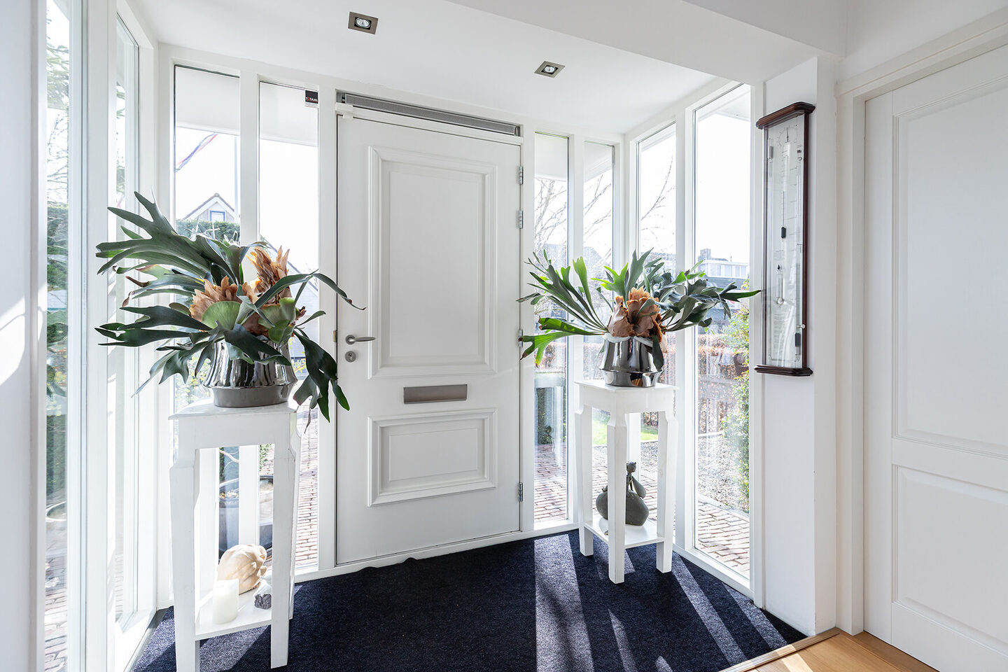 De inpandige garage is niet alleen ruim, maar ook voorzien van een elektrische deur, elektra, water, verwarming, een wastafel en de opstelplaats voor de wasapparatuur. Daarmee is dit een multifunctionele ruimte die uitstekend past bij het royale karakter van de woning.