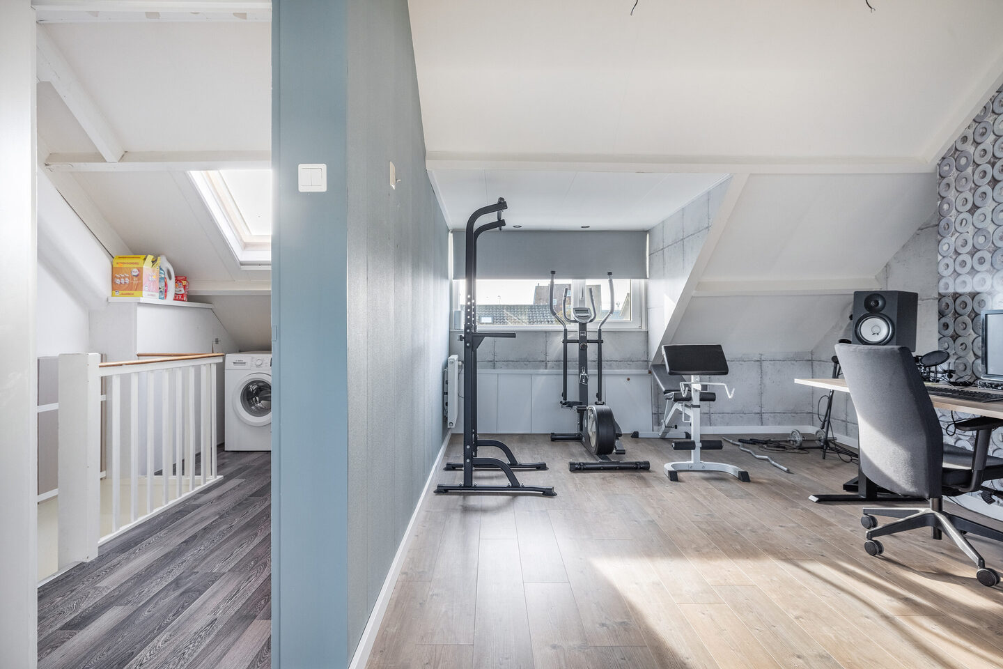 Op de voorzolder bevinden zich de aansluitingen voor wasmachine en droger, evenals de opstelplaats van de cv-ketel.