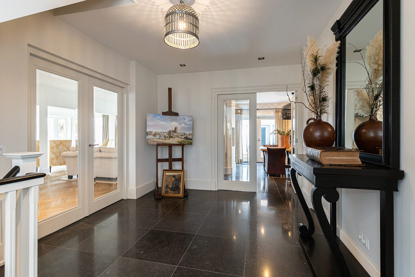 Op de eerste verdieping vindt u drie riante slaapkamers, waaronder de master suite met balkon op het zuiden en een luxe en-suite badkamer. Een tweede, volwaardige badkamer en een separate wasruimte zorgen voor optimaal dagelijks gemak. Ook het balkon aan de oostzijde biedt een plek met uitzicht op de zonsopgang.