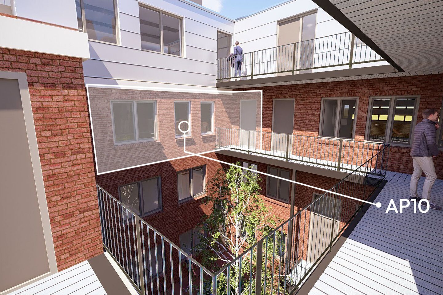 Aan de voorkant van het wooncomplex ervaar je de bruisende stad. Achter de monumentale gevel beleef je een oase van rust, dankzij de sfeervolle binnentuin, binnenhof en de groendaken; het beste van twee werelden. In deze binnentuin bevinden zich ook je eigen buitenberging en de parkeerplaatsen.