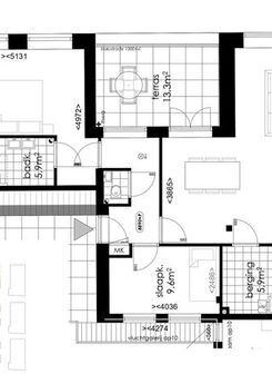 Heel bijzonder en licht appartement van 104 m² dat zich uitstrekt over de gehele breedte van het wooncomplex. Entree via de gemeenschappelijke buitenruimte op de derde verdieping waarna je in de hal een eerste toilet vindt. Er zijn twee ruime slaapkamers (18,7 m² en 9,6 m²), een inpandige berging en een luxe badkamer met douche, wastafel en tweede toilet. De zeer ruime woonkamer met open keuken van in totaal 53,9 m² en het terras van 13,3 m²