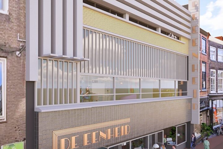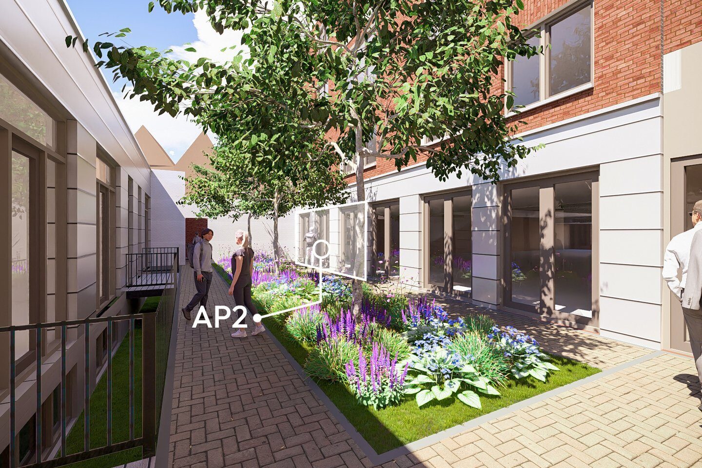 Aan de voorkant van het wooncomplex ervaar je de bruisende stad. Achter de monumentale gevel beleef je een oase van rust, dankzij de sfeervolle binnentuin, binnenhof en de groendaken; het beste van twee werelden. In deze binnentuin bevinden zich ook je eigen buitenberging en de parkeerplaatsen.