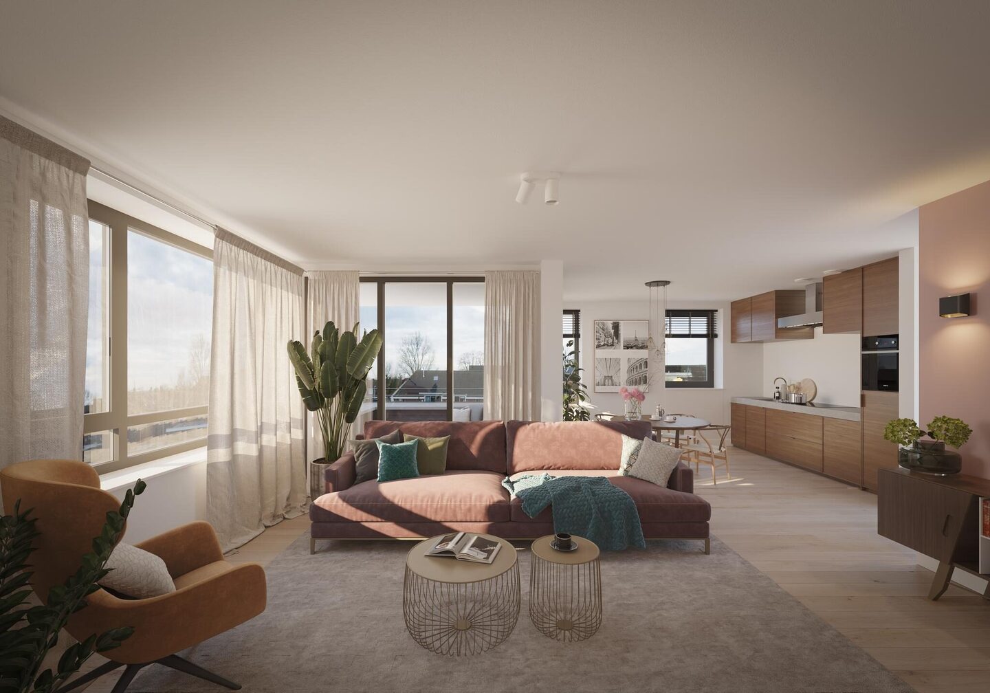De drie appartementen van het type Populier hebben een zonnige woonkamer met een hoekbalkon op het zuidwesten. Een lekker plekje om te genieten van een prachtige zonsondergang. De praktische indeling van dit appartement geeft u alle mogelijkheden om hier helemaal uw eigen plek van te maken. Hier voelt u zich snel thuis!