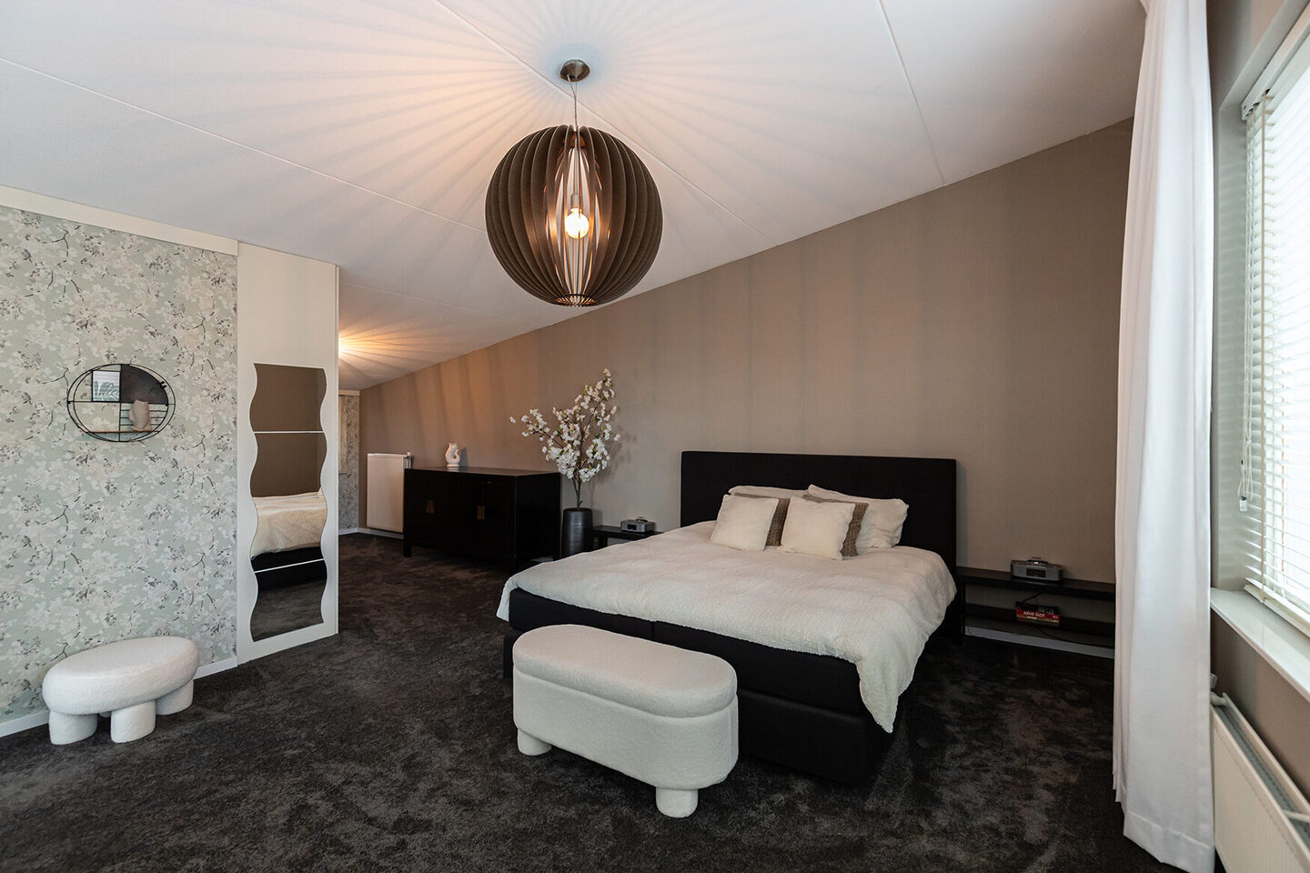 Via de overloop bereik je de ruime hoofdslaapkamer van ruim dertig vierkante meter. De kamer heeft een vaste kast en is voorzien van nieuwe vloerbedekking, wat het geheel een frisse, verzorgde uitstraling geeft. De badkamer grenst direct aan de overloop en is ruim van opzet met een douchecabine, wandtoilet, drie wandkasten, een badmeubel met geïntegreerde wastafel en een bijpassende spiegelkast. Een designradiator zorgt voor een aangename temperatuur.