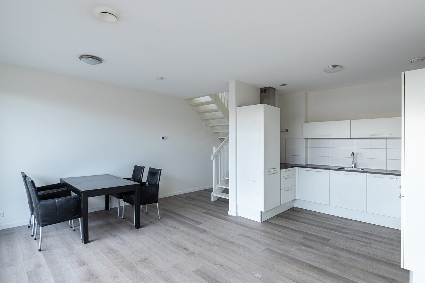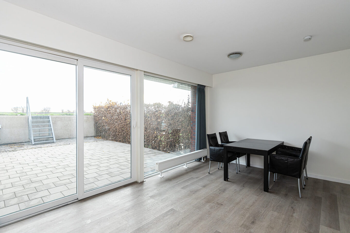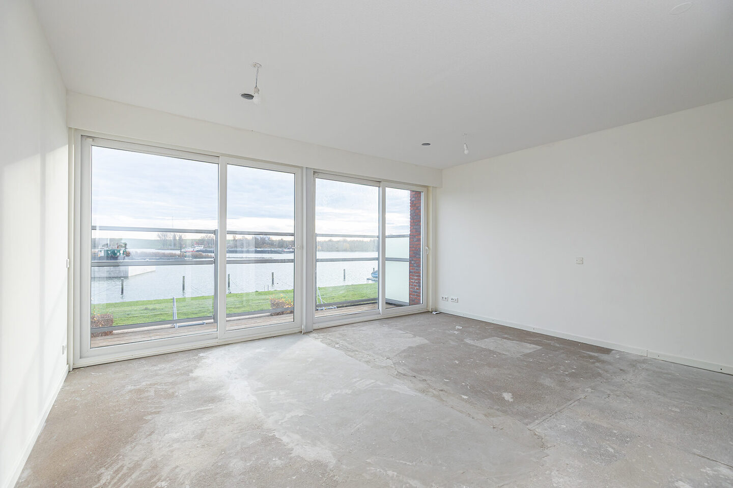 De woonkamer bevindt zich op de volgende verdieping en is opvallend licht door de grote schuifpui. Vanuit hier stap je zo het balkon op en geniet je van een prachtig uitzicht over de rivier de Beneden Merwede, een uitzicht dat nooit verveelt.