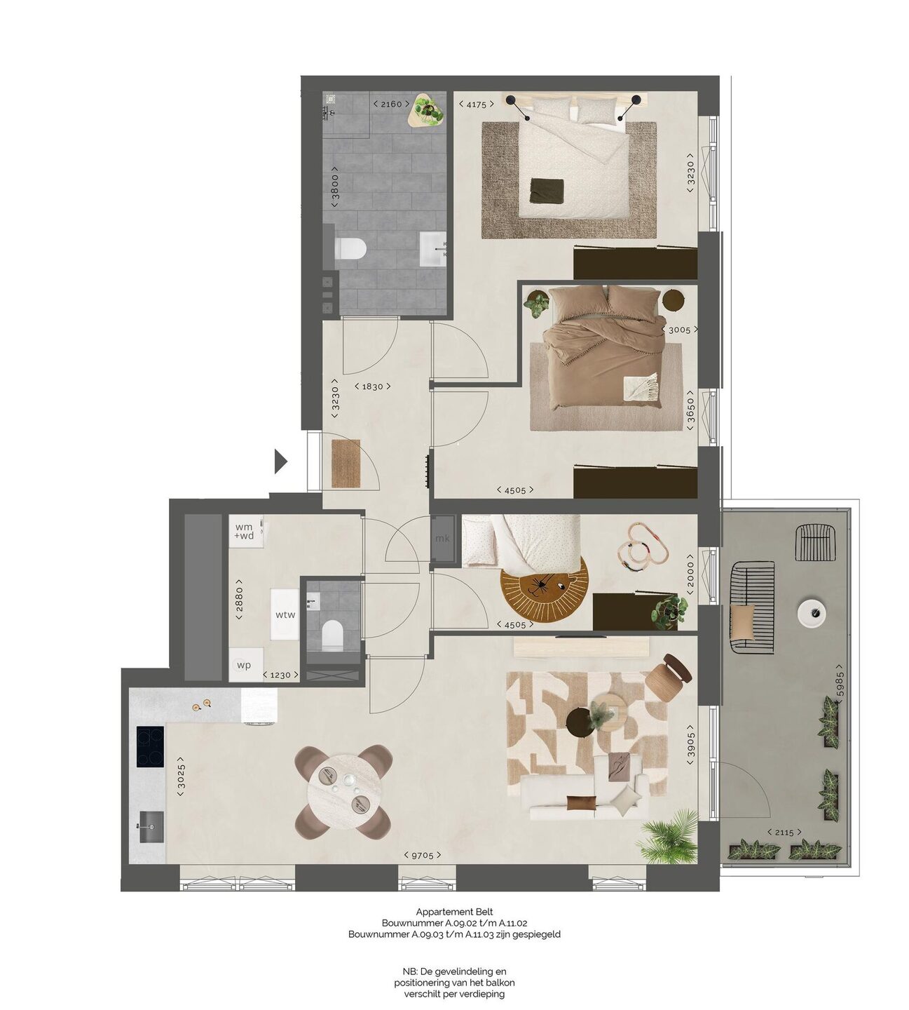 De appartementen hebben, naast de woonkamer nog een drietal kamers. Te gebruiken als slaapkamer, studeerkamer of werkkamer. In basis hebben deze appartementen ook een tweede toilet in de badkamer.
