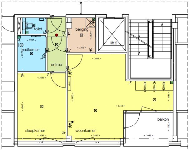 Dit 2-kamerappartement is gesitueerd op de eerste verdieping met een inpandig balkon gelegen op het Oosten. De verwarming geschiedt door middel van een lucht/lucht warmtepomp (airco) en elektrische radiatoren in de bad- en slaapkamer en heeft een inpandige berging op de begane grond.