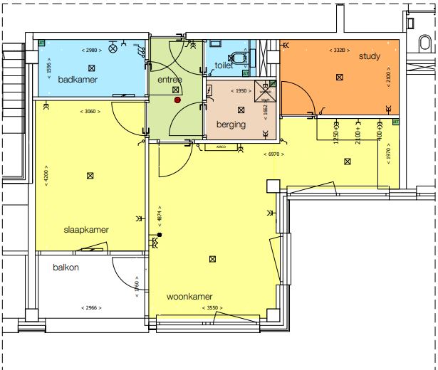 Dit 3-kamerappartement is gesitueerd op de eerste verdieping met een inpandig balkon gelegen op het Oosten. De verwarming geschiedt door middel van een lucht/lucht warmtepomp (airco) en elektrische radiatoren in de bad- en slaapkamer. Behalve een slaapkamer is er nog een study of hobbyruimte. Op begane grond is de inpandige berging die bij dit appartement behoort.