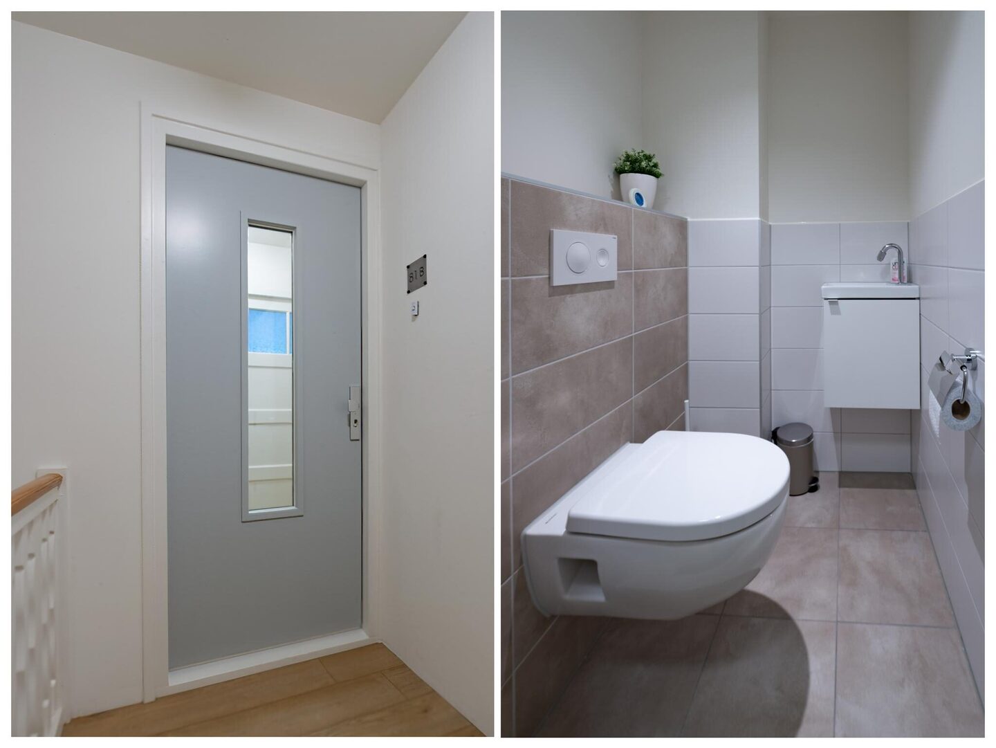 Overloop met toegang tot het toilet en de woonkamer.