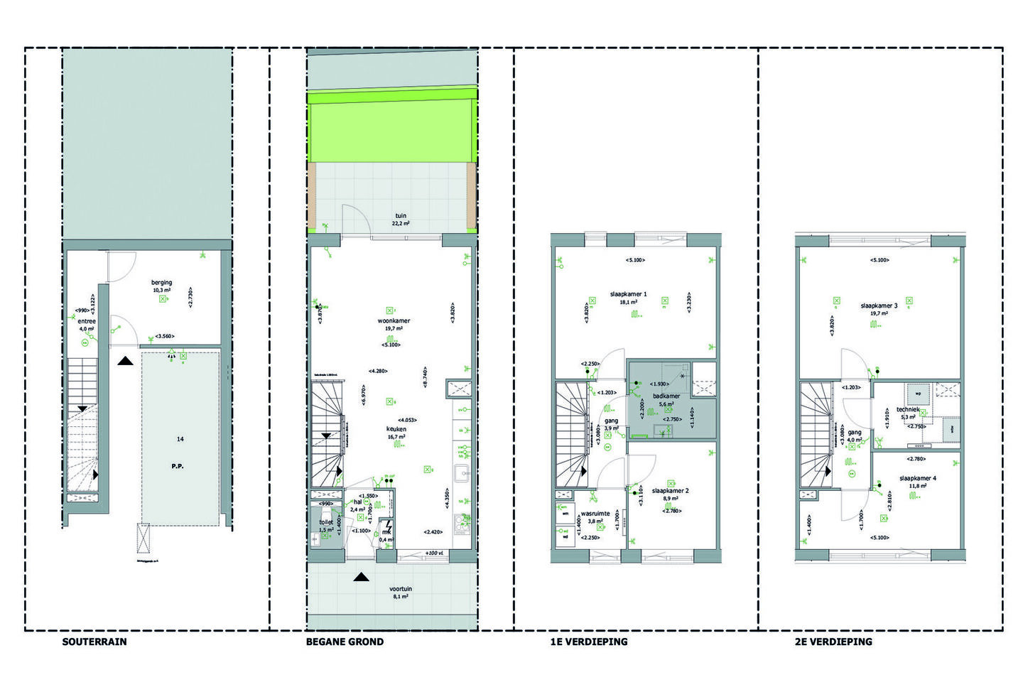 Een vierde slaapkamer aan de voorzijde (ca. 12m²).