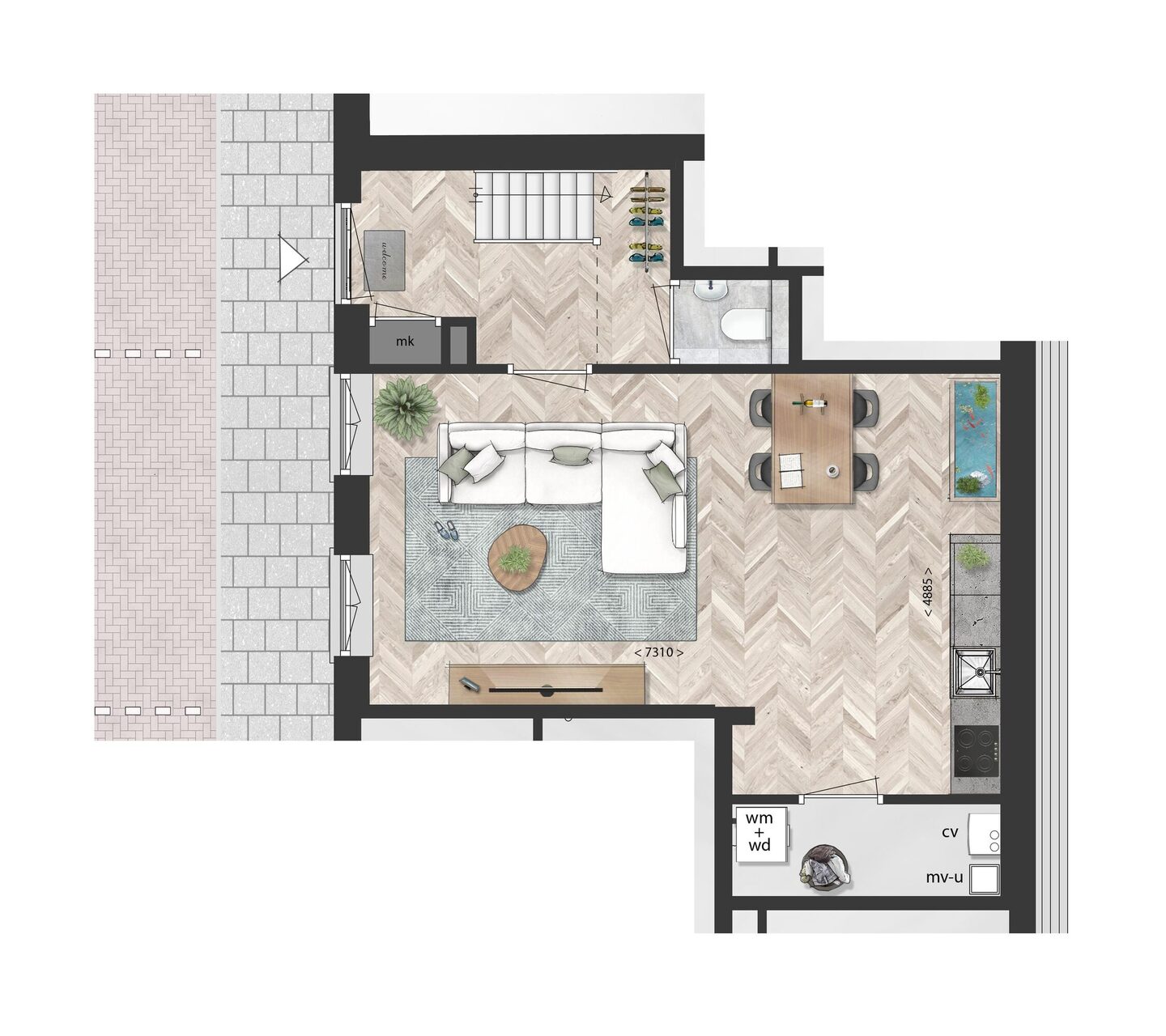 Op de begane grond bevindt zich de ruime en lichte living met open keuken: een prettige leefruimte waar koken, ontspannen en samen zijn moeiteloos samenkomen. Daarnaast is hier een separaat toilet gesitueerd, praktisch en comfortabel voor dagelijks gebruik en bezoek.