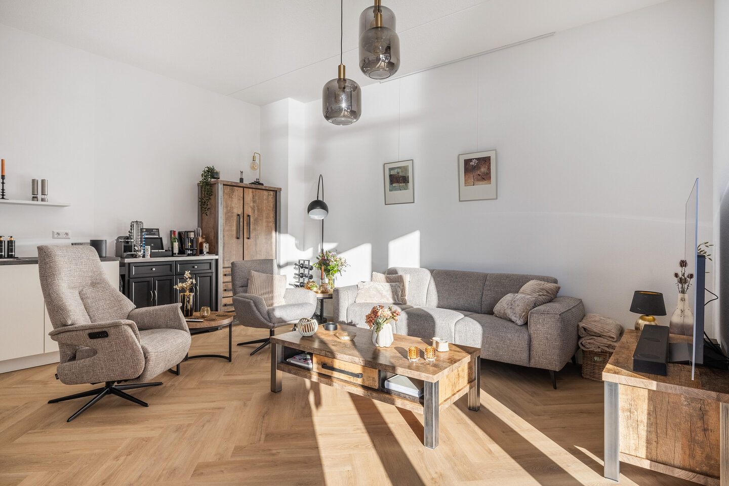 The apartment is finished with fine “spack” plasterwork on the walls and a modern herringbone PVC floor, creating a high-end appearance. A heat pump, solar panels and a heat-recovery ventilation system (HRV/WTW) ensure a comfortable and energy-efficient indoor climate, resulting in low electricity costs. The apartment is fully gas-free.