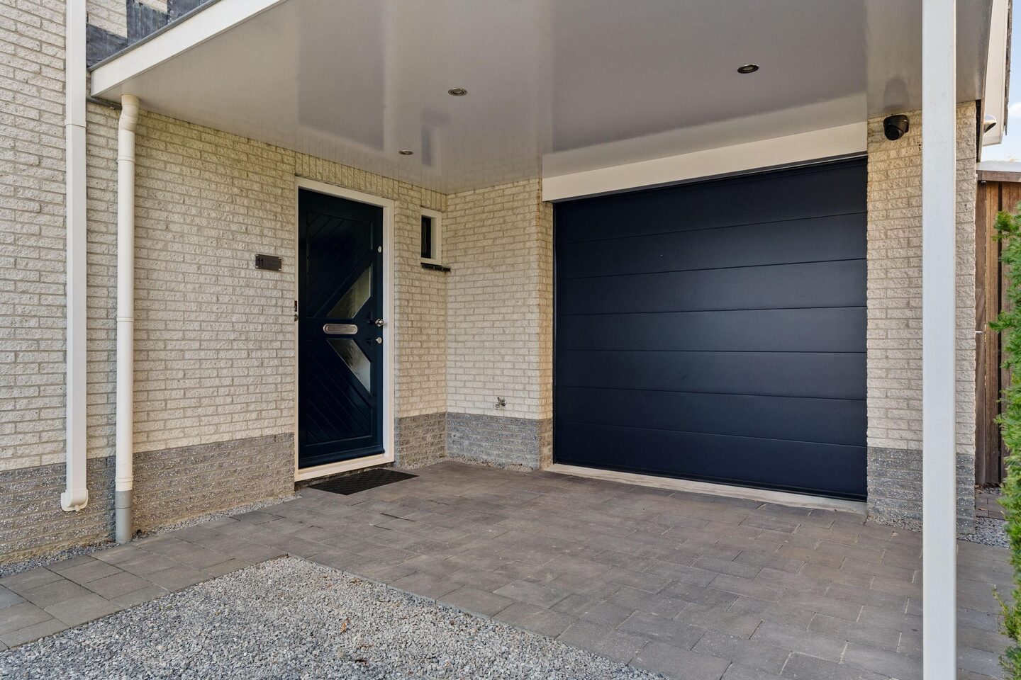 De inpandige garage is voorzien van een elektrisch bedienbare deur, verwarming, elektra en een wateraansluiting. De goed afgewerkte garage met radiator kan tevens getransformeerd worden naar kantoor of speelruimte vanwege de lichtinval door deuren en grote raampartij. De inpandige garage is opgeteld bij de woonoppervlakte.