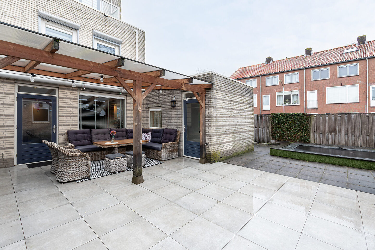 De achtertuin is verrassend ruim en biedt volop privacy. De overkapping direct achter de woning maakt het mogelijk om al vroeg in het voorjaar en tot laat in het najaar buiten te zitten. Er is meer dan voldoende ruimte voor een ingebouwde trampoline, speeltoestellen of meerdere zitplekken.