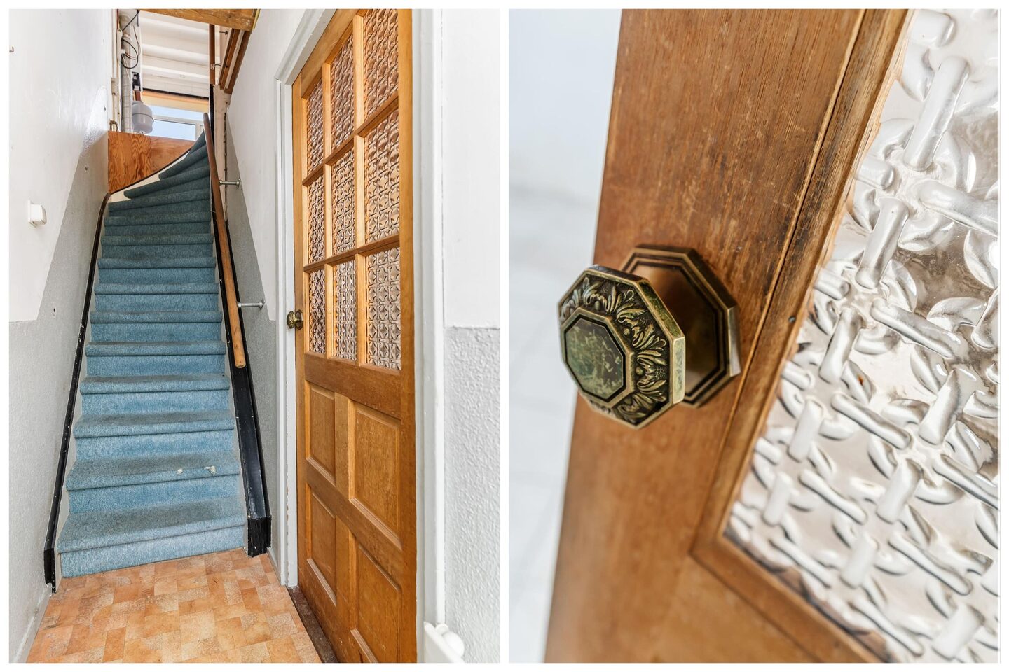 De badkamer bevindt zich op de begane grond en is functioneel, maar sterk verouderd uitgevoerd met een douche, wastafel en toilet. Ook hier geldt: een ruimte met potentie, klaar voor een eigentijdse invulling.