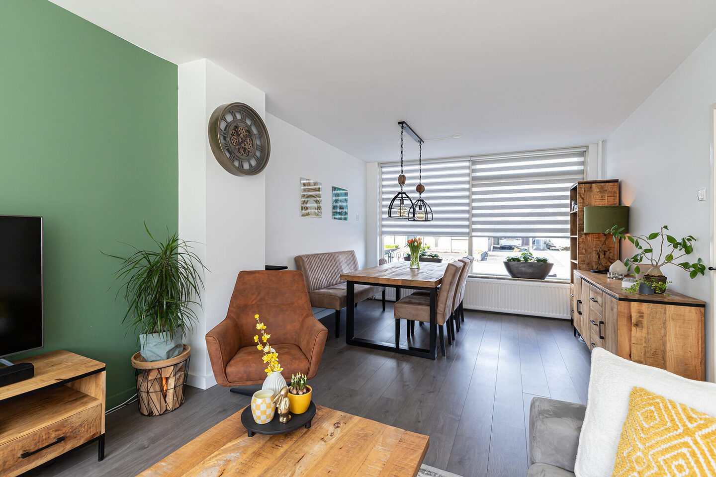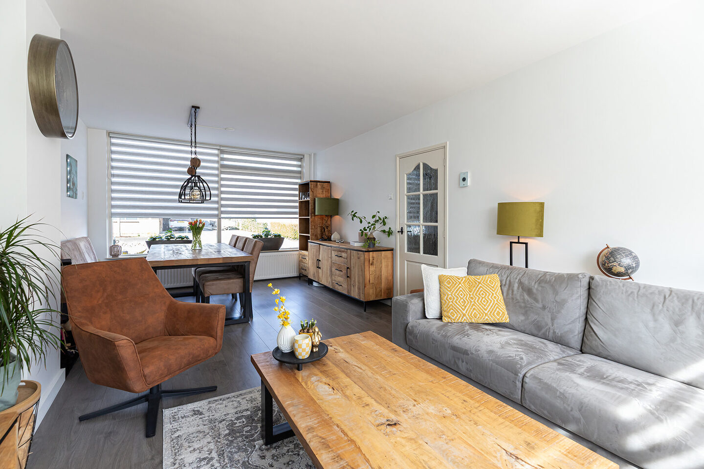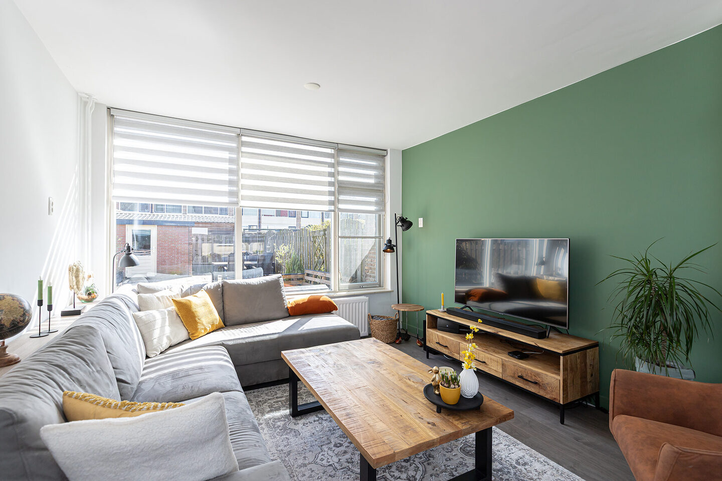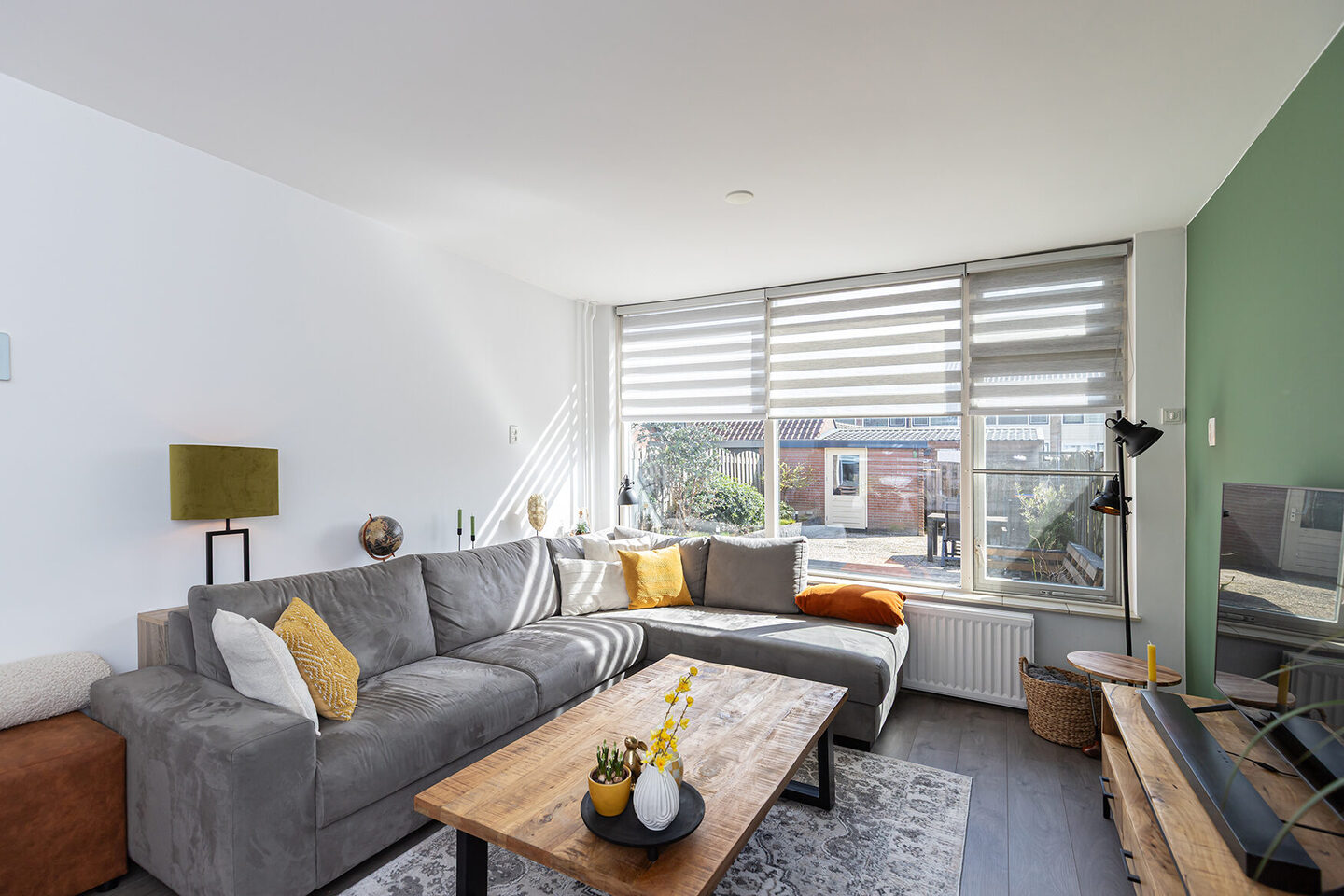 Deze tussenwoning combineert een praktische indeling met fijne leefruimtes en een zonnige, diepe achtertuin op het zuiden tot zuidoosten. Binnen valt direct de prettige lichtinval in de doorzonkamer op, terwijl buiten het royale terras, de groene border, de gezellige buitenverlichting en de eigen achterom zorgen voor een buitenruimte waar je al snel graag tijd doorbrengt.
