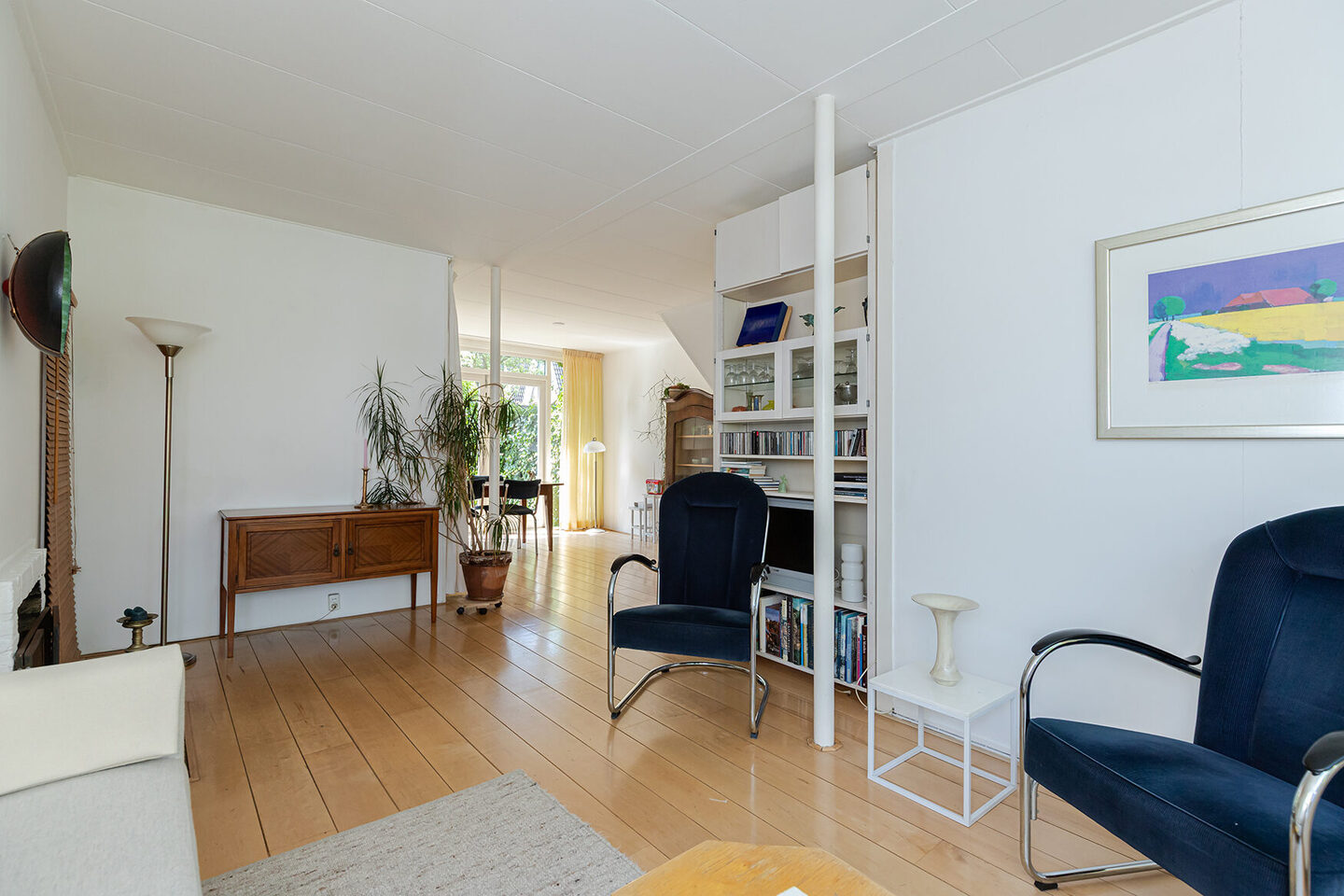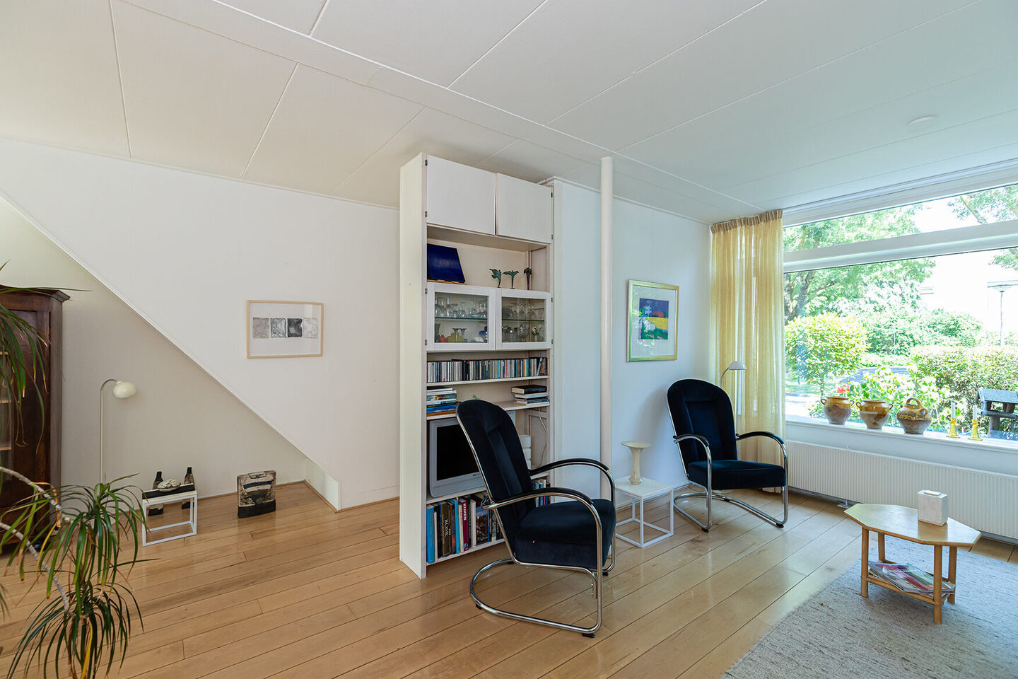 De open trap in de woonkamer is destijds dichtgemaakt, waardoor de warmte beter behouden blijft. De trap is nu bereikbaar vanuit de hal.