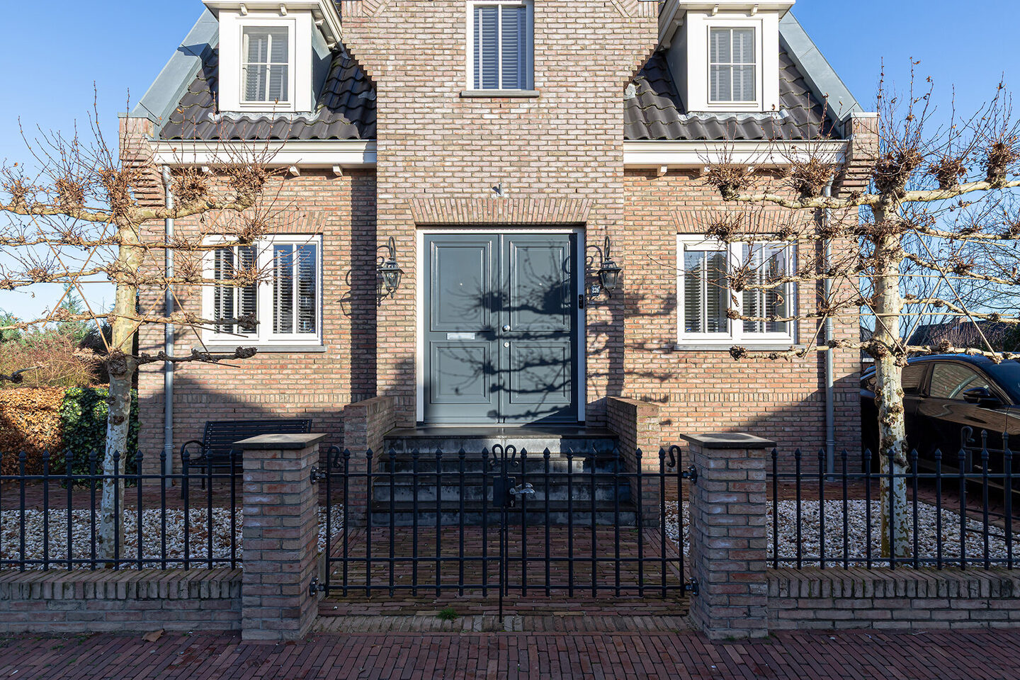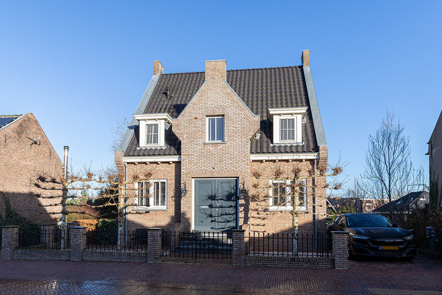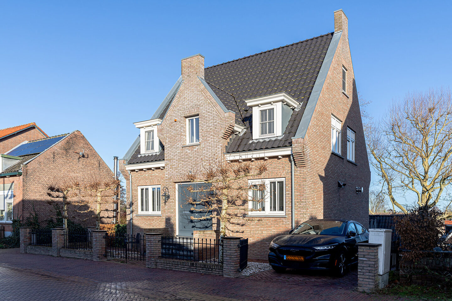De woning, gebouwd in 2012, is volledig geïsoleerd, voorzien van energielabel A en uitgerust met hoogwaardige installaties. De witte kozijnen in combinatie met de antracietkleurige voordeur geven het geheel een eigentijdse touch, terwijl het karakteristieke trapje naar de entree direct een gevoel van grandeur oproept. Parkeren kan gemakkelijk op eigen terrein naast de woning.