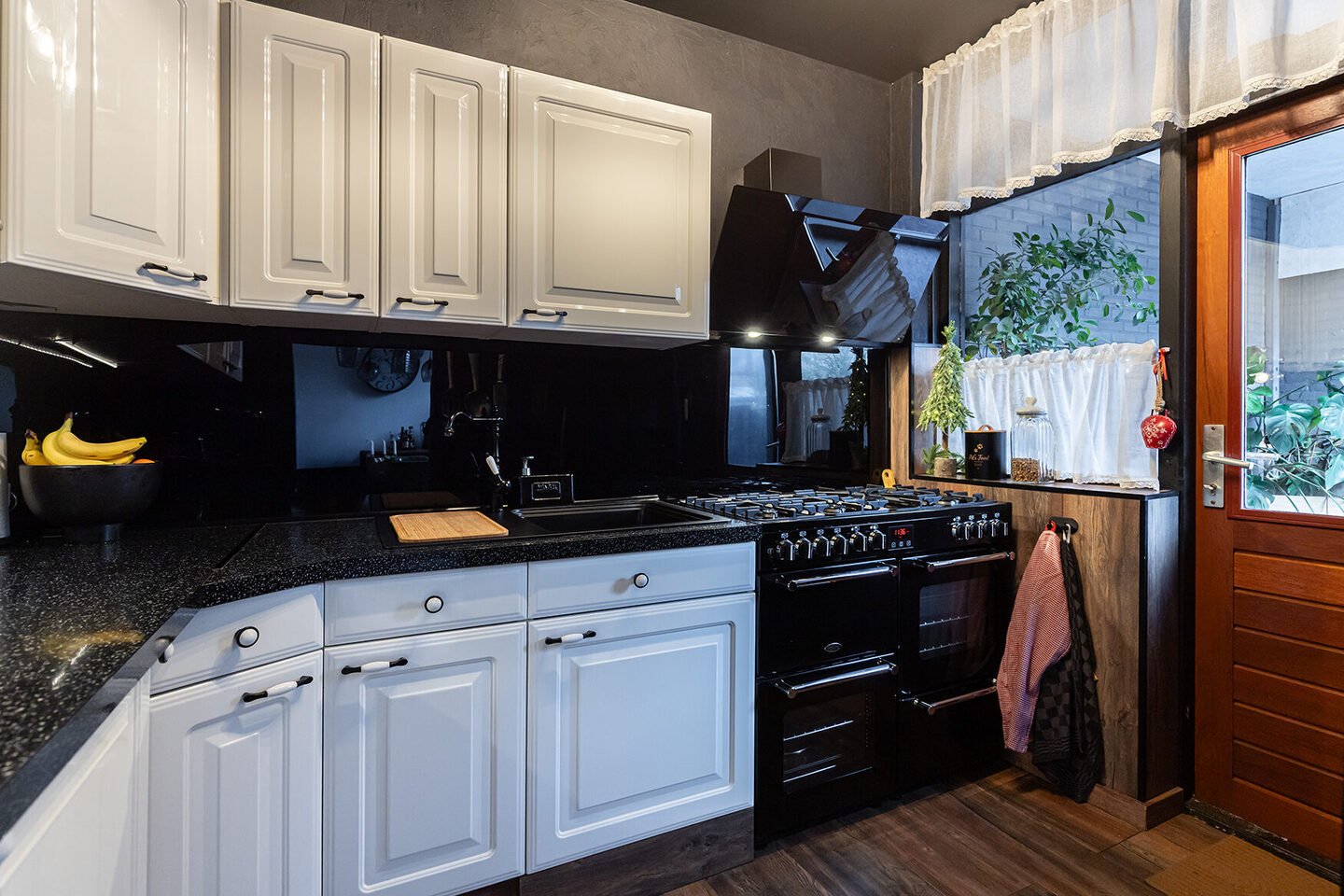De keuken is bereikbaar via een speelse toog en vormt een praktische en stijlvolle leefruimte. De moderne inrichting is compleet en voorzien van een in 2023 geplaatst vrijstaand fornuis, waardoor koken hier echt centraal staat. Vanuit de keuken is er direct toegang tot de achtertuin, wat het contact tussen binnen en buiten extra prettig maakt.