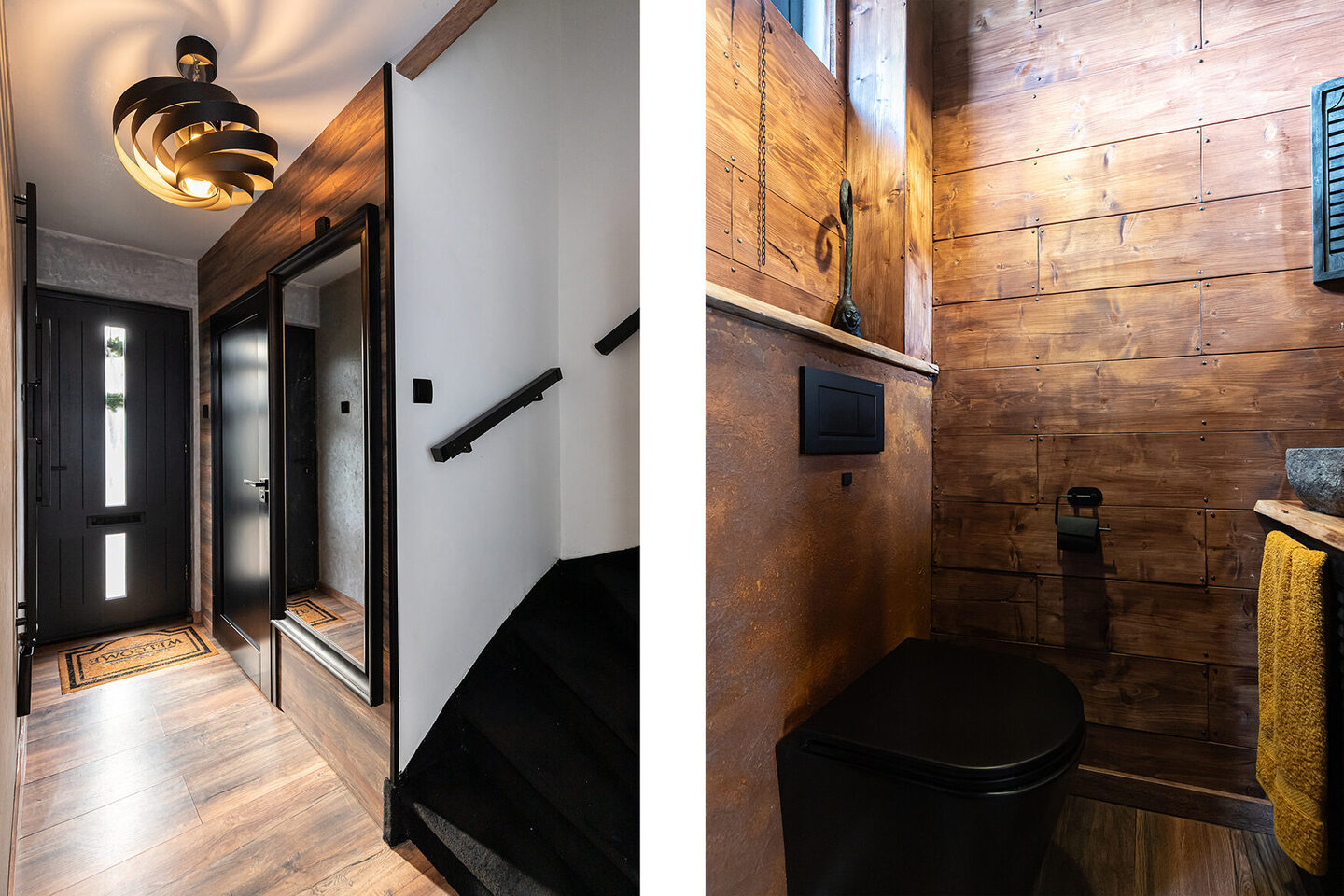 De entree zet meteen de toon voor de rest van de woning. De hal straalt karakter en warmte uit en sluit naadloos aan op het eigentijdse interieur. De toiletruimte is uitgevoerd in dezelfde moderne stijl en vormt een mooi geheel met de rest van het huis.