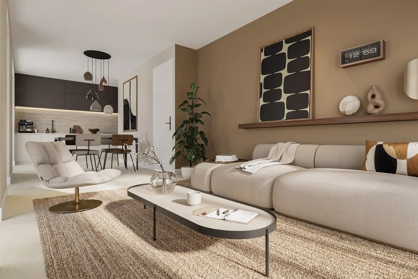 De 2-kamerappartementen beschikken in de woonkamer en keuken over veel ramen door de ligging aan de gevel. Het balkon grens aan de woonkamer en is, zeker voor een 2-kamerappartement, fraai van maatvoering.