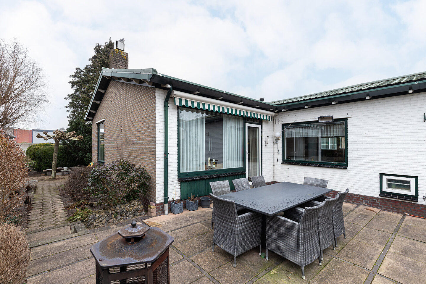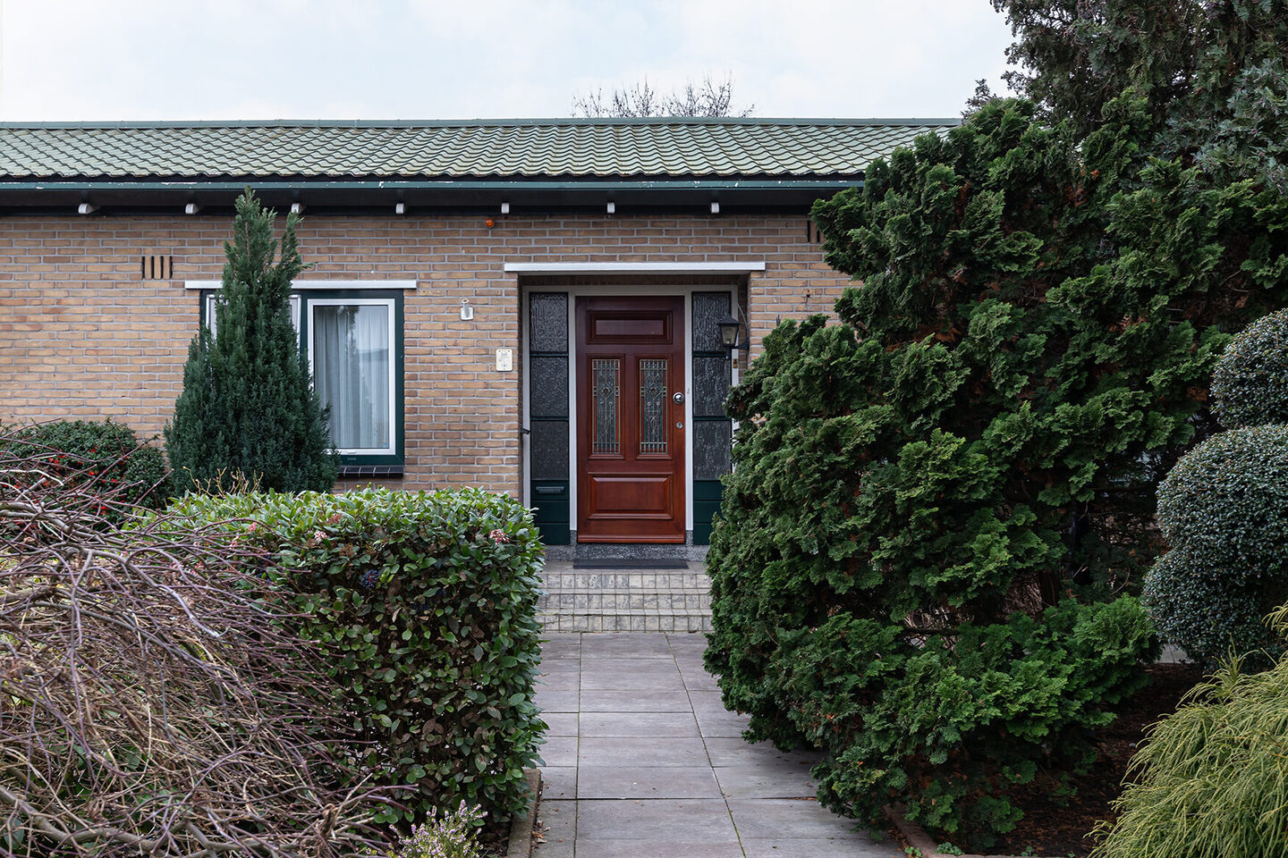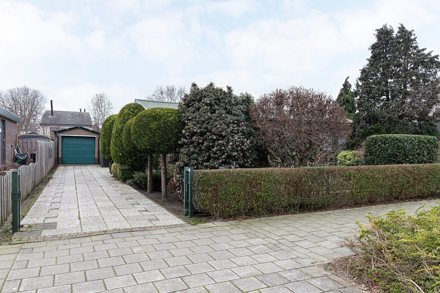 Rondom de woning ligt een fraai aangelegde tuin met een grote variatie aan beplanting, meerdere terrassen en volop mogelijkheden om zowel in de zon als in de schaduw te zitten. De patiotuin aan de achterzijde ligt gunstig op het zuidwesten en biedt veel privacy. Verder zijn er buitenverlichting, een houten tuinhuisje en zonwering aan de achtergevel aanwezig. De vrijstaande stenen garage is voorzien van elektra en een elektrisch bedienbare deur. Op de oprit is ruimte om twee auto’s te parkeren. De voortuin is omgeven door een groene haag en speels aangelegd met wandelpaadjes, wat zorgt voor een verzorgde en uitnodigende uitstraling.