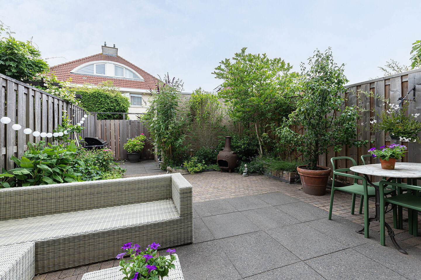 De voortuin is verzorgd aangelegd met een speels niveauverschil en groene beplanting. De achtertuin, gunstig gelegen op het zuiden, is onderhoudsvriendelijk ingericht met sierbestrating en een groene border. Via de achterom is de tuin eenvoudig bereikbaar. In de tuin staat een stenen berging van 2,86 bij 2,45 meter, voorzien van elektra.