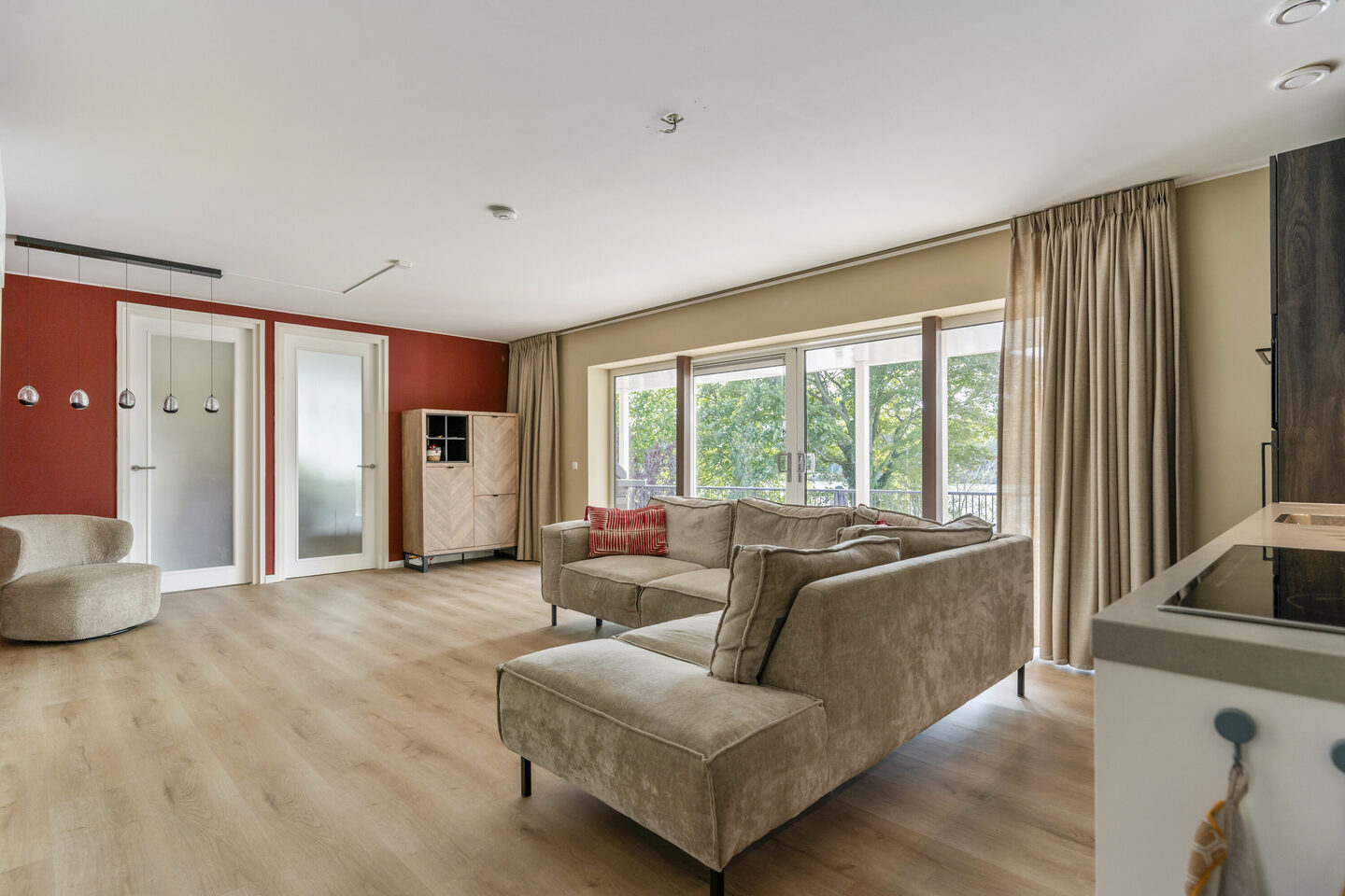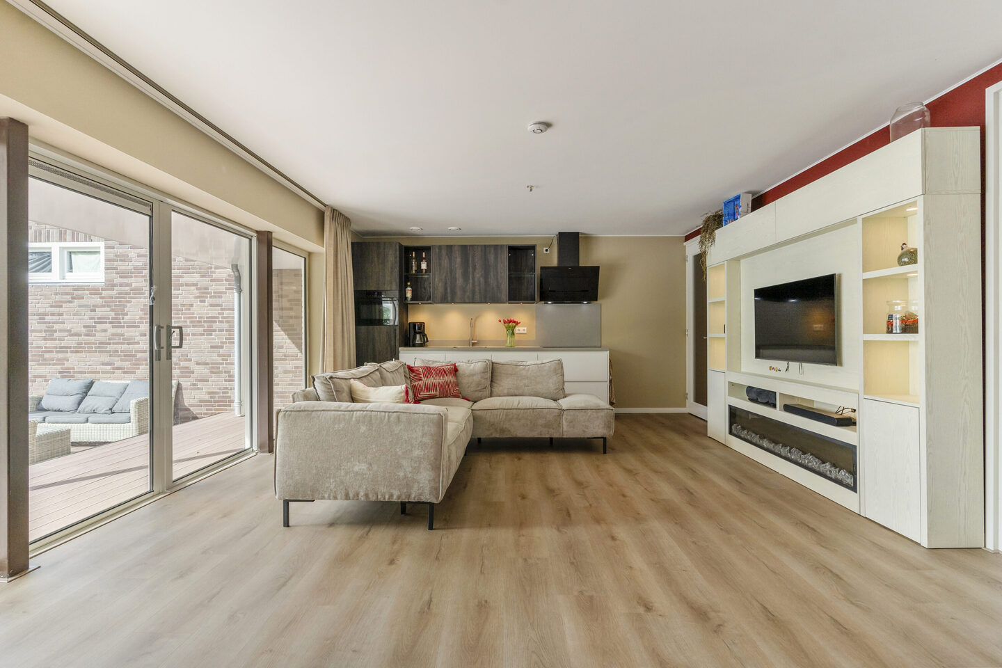 Vanuit de hal kom je in de ruime en lichte woonkamer met open keuken. Middels een schuifpui is het royale terras bereikbaar. Vanuit de woonkamer is er toegang tot de stookruimte waar ook de aansluiting voor wasmachine en -droger zich bevinden.