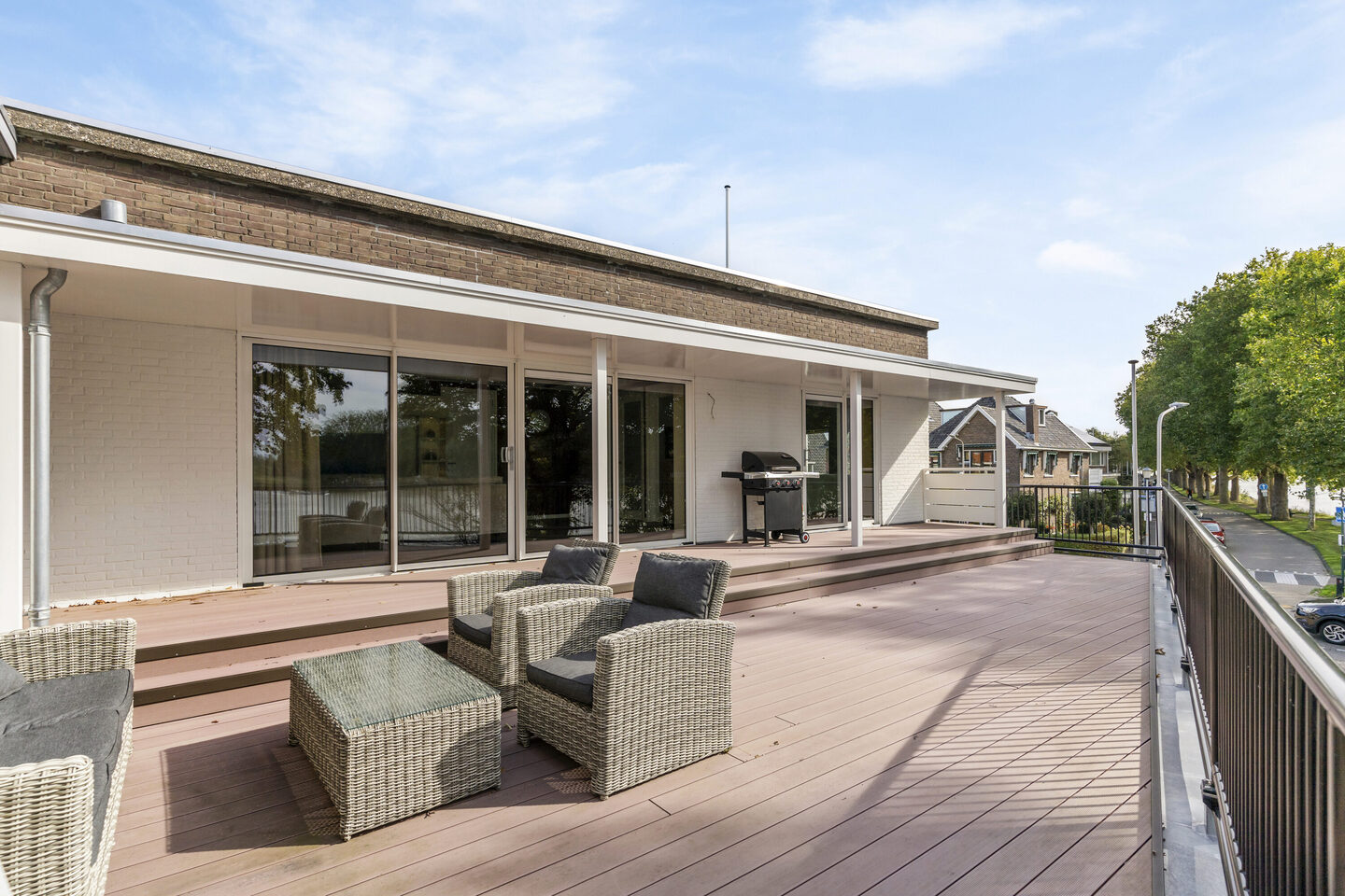 Het terras ligt op het zuiden en hier kan je heerlijk genieten van de mooie omgeving met uitzicht over de rivier.