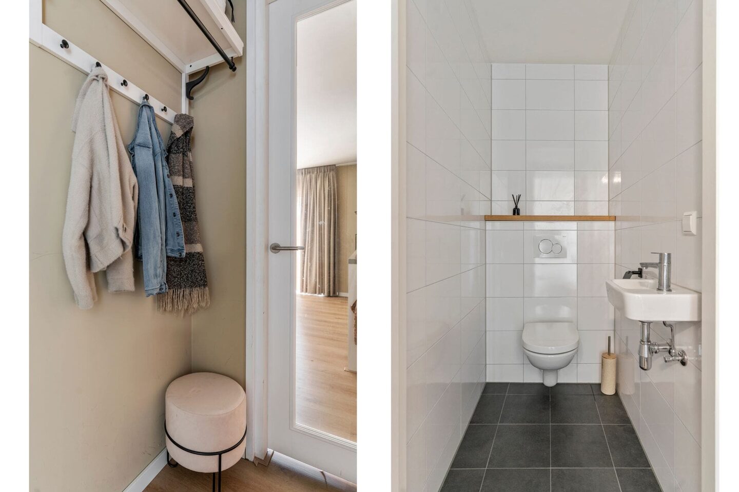 Entree met toegang tot het separaat toilet, badkamer en woonkamer.