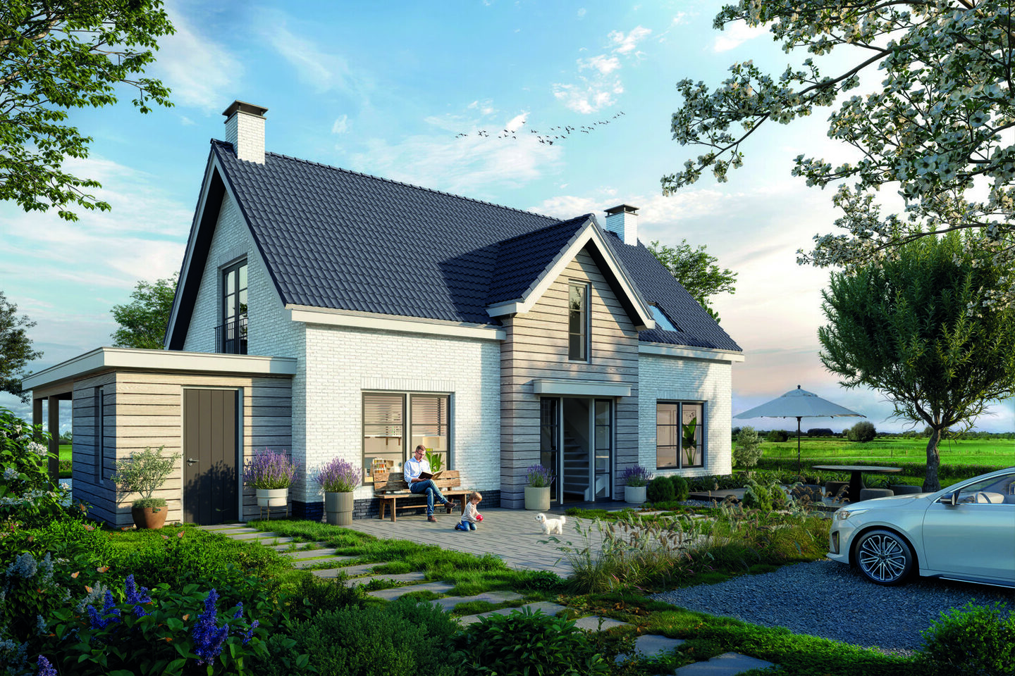 Wie wil, kan het woongenot nog verder vergroten met een optionele carport met berging of een veranda. Daarmee maak je van het buitenleven een verlengstuk van het huis, precies zoals het bedoeld is op deze prachtige plek.