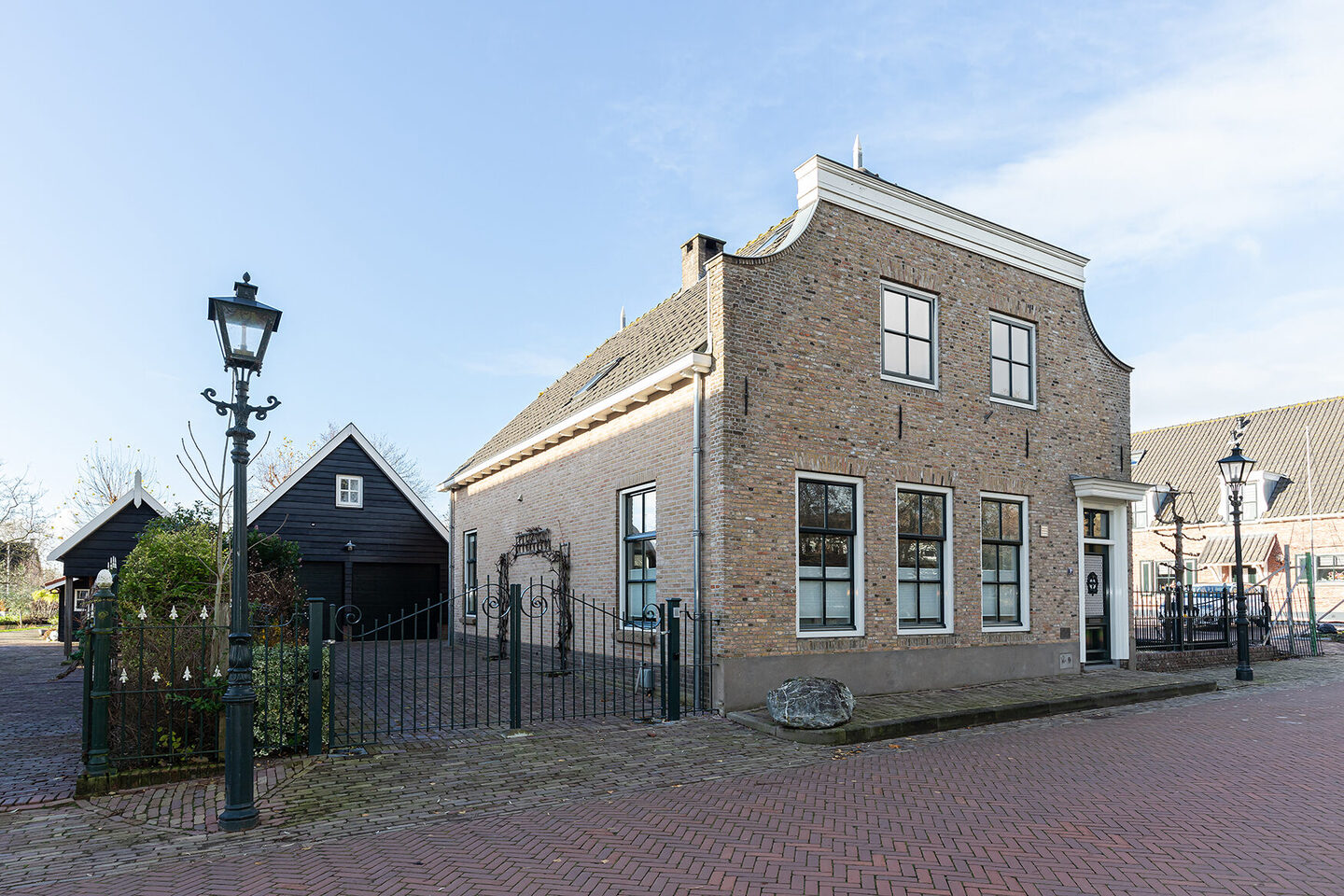 De woning beschikt over een stijlvolle oprit met een elektrisch bedienbaar hek en biedt parkeergelegenheid voor minimaal drie auto’s. De dubbele garage is volledig geïsoleerd, uitgerust met elektrische deuren en beschikt zelfs over een extra verdieping. De garage, uitgevoerd in gepotdekseld, donker red cedarhout, sluit perfect aan bij de landelijke stijl van de woning. Aan de achterzijde is een extra loopdeur en een in stijl gebouwde houten berging geplaatst.