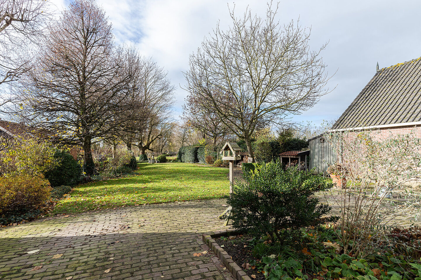 De diepe achtertuin van ruim 60 meter grenst aan het water en is een waar paradijs. Direct aan de woning ligt een royaal terras, waar het woningbrede zonnescherm desgewenst voor verkoelende schaduw zorgt. De tuin is fraai aangelegd met sierbestrating, diverse plantvakken en volwassen bomen, zoals een notenboom en een treurwilg. Hier kunt u in alle rust genieten van de natuurlijke schaduw of juist een zonnig plekje opzoeken.