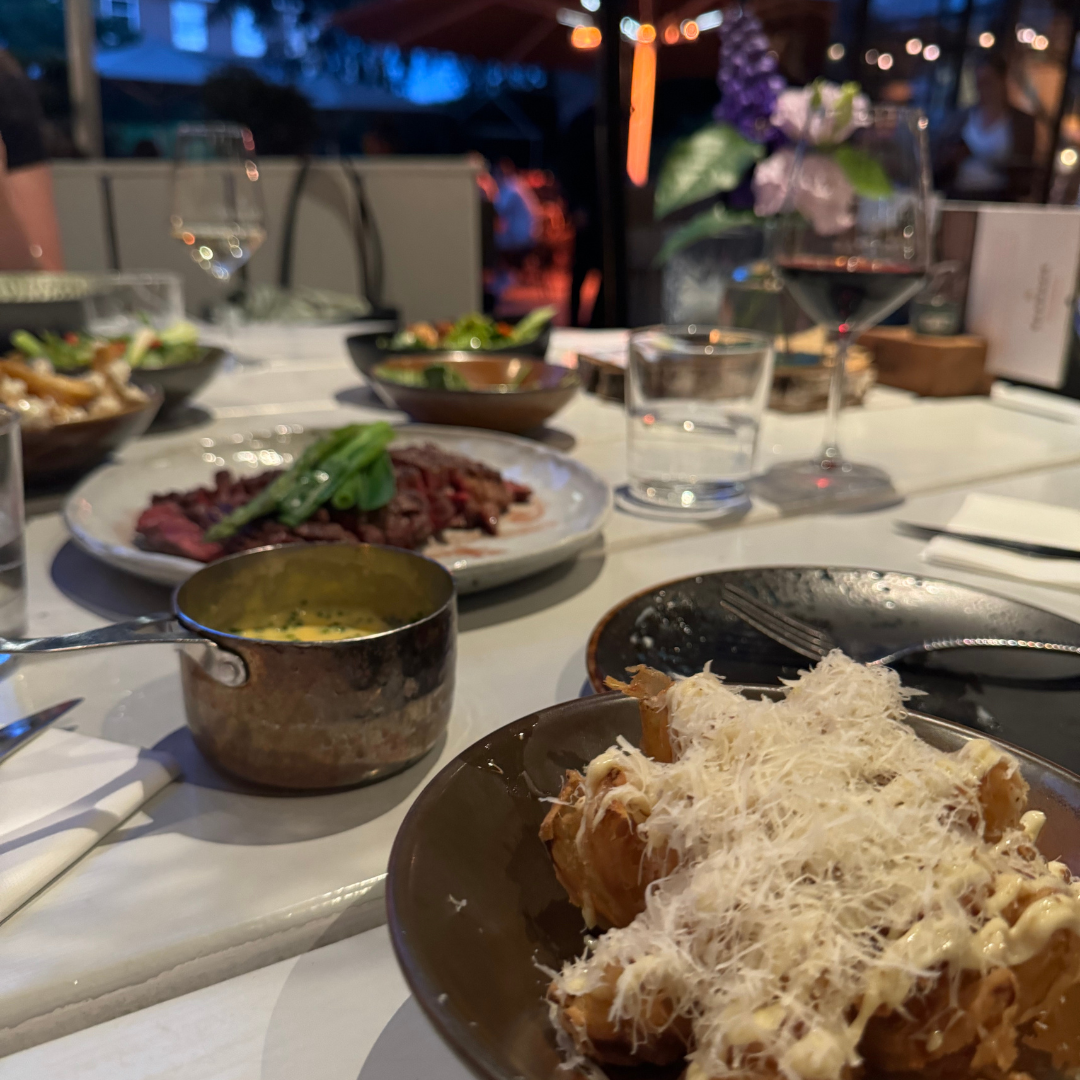 Halverwege stopte de motor van onze sloep onverwachts. We moesten improviseren en de boot naar de kant brengen om deze te verlaten. Gelukkig waren er bekenden in de buurt die ons hielpen, zodat we veilig aankwamen bij Le Barrage. Daar genoten we van een heerlijk hoofdgerecht en dessert.
