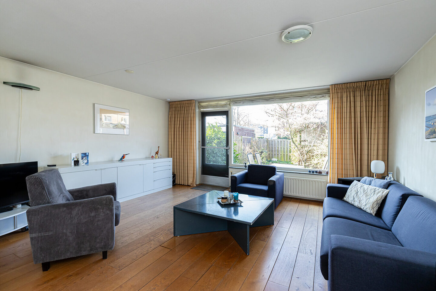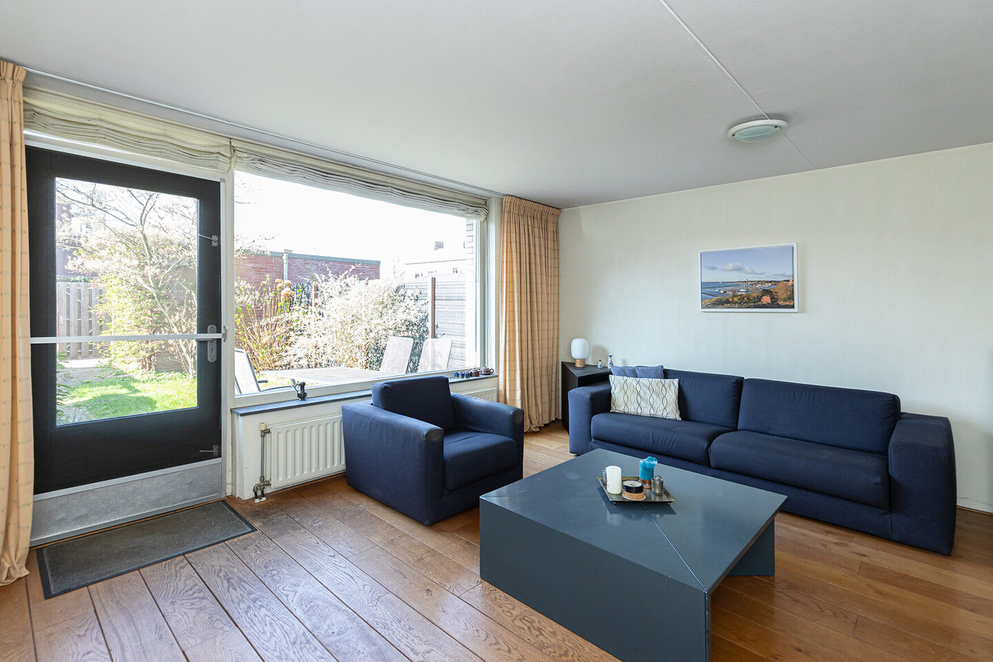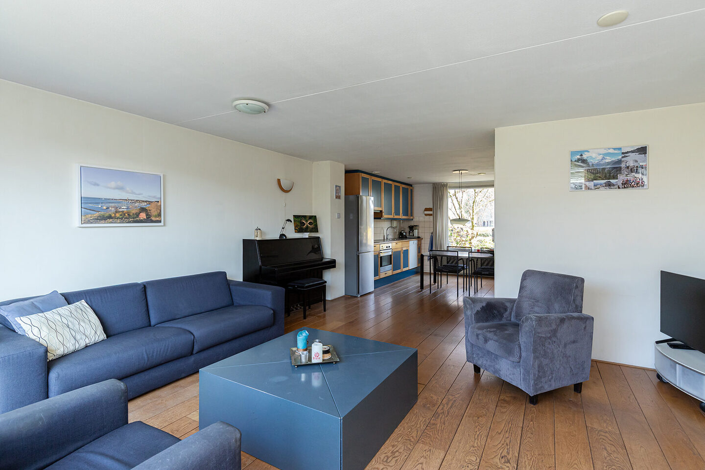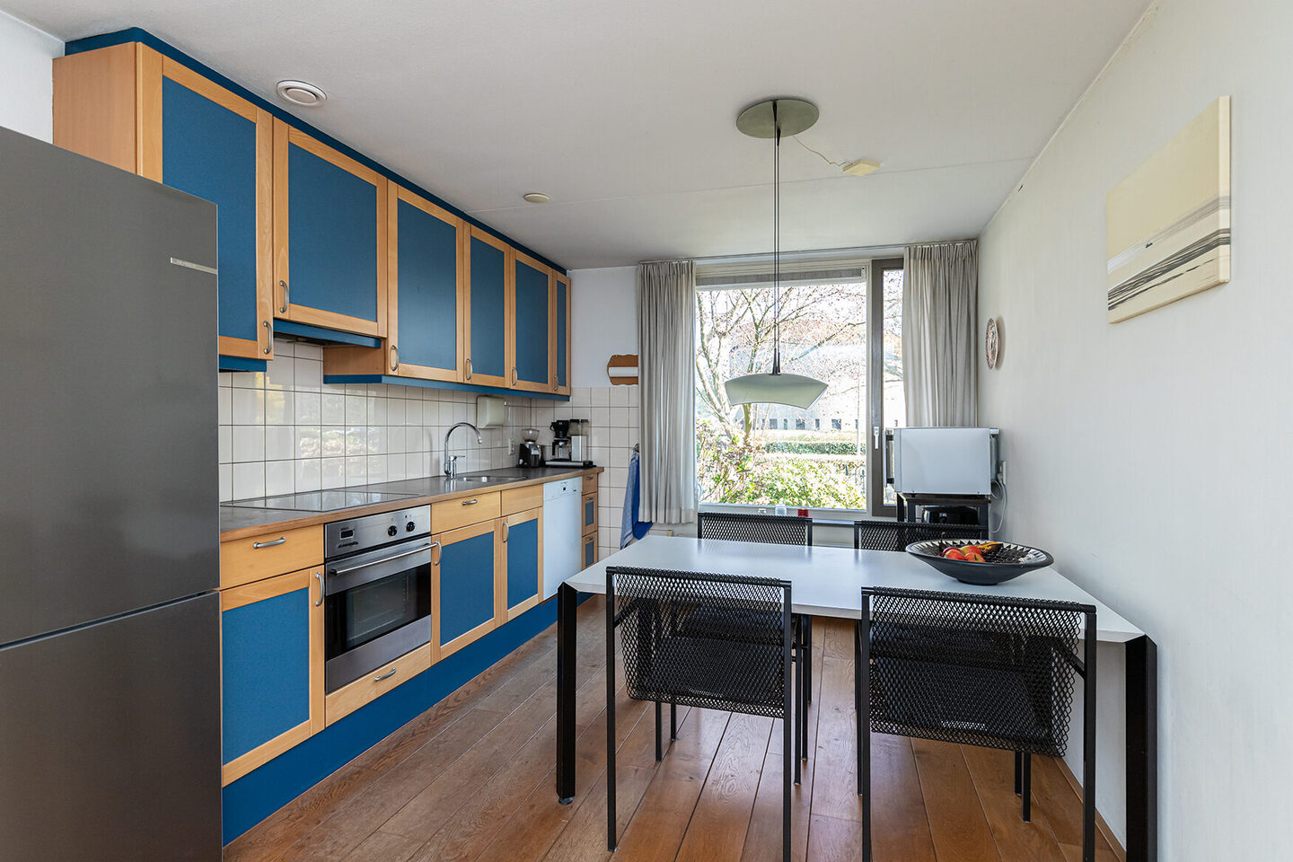 Bij binnenkomst betreed je een nette hal met toegang tot het toilet, de meterkast en een trapkast. De woonkamer is heerlijk licht door de grote raampartijen en biedt via openslaande deuren directe toegang tot de achtertuin. Aan de voorzijde bevindt zich de open keuken in een beuken-blauwe kleurstelling met kunststof werkblad. De keuken is voorzien van een elektrische kookplaat, oven, vaatwasser en afzuigkap; de vrijstaande koelkast is ter overname. Dankzij de ruimte is er meer dan voldoende plek voor een royale eettafel.