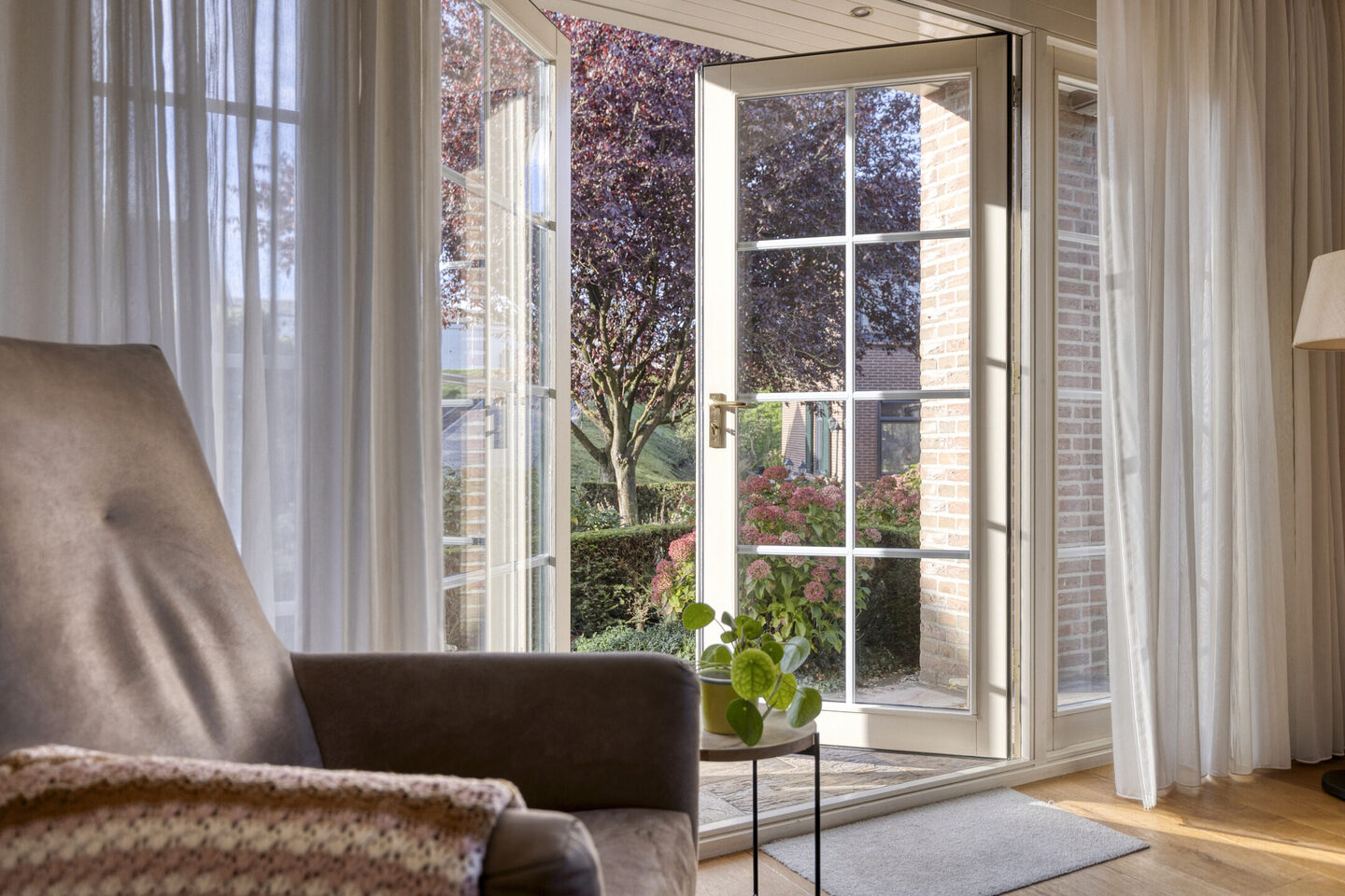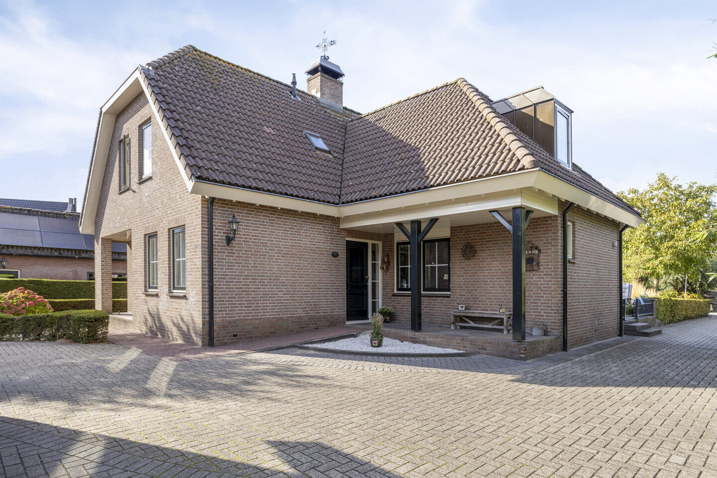 Je betreedt de woning via een stijlvolle overkapping. In de entree/hal bevinden zich de meterkast, trapopgang en toiletruimte. De lichte, ruime woonkamer heeft een allesbrander en openslaande deuren naar de tuin. De roedeverdeling in de ramen geeft de ruimte extra karakter en sfeer.