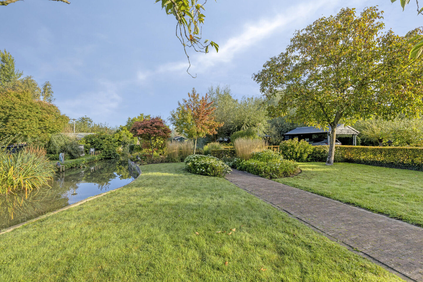 De tuin is maar liefst ca. 90 meter diep en ca. 25 meter breed. Een deel grenst aan een singel, waardoor rust en natuur dichtbij zijn. De tuin is fraai aangelegd en zorgvuldig onderhouden, met een weids gazon, kleurrijke borders en gevarieerde beplanting. Buitenverlichting zorgt voor een sfeervol geheel in de avond.