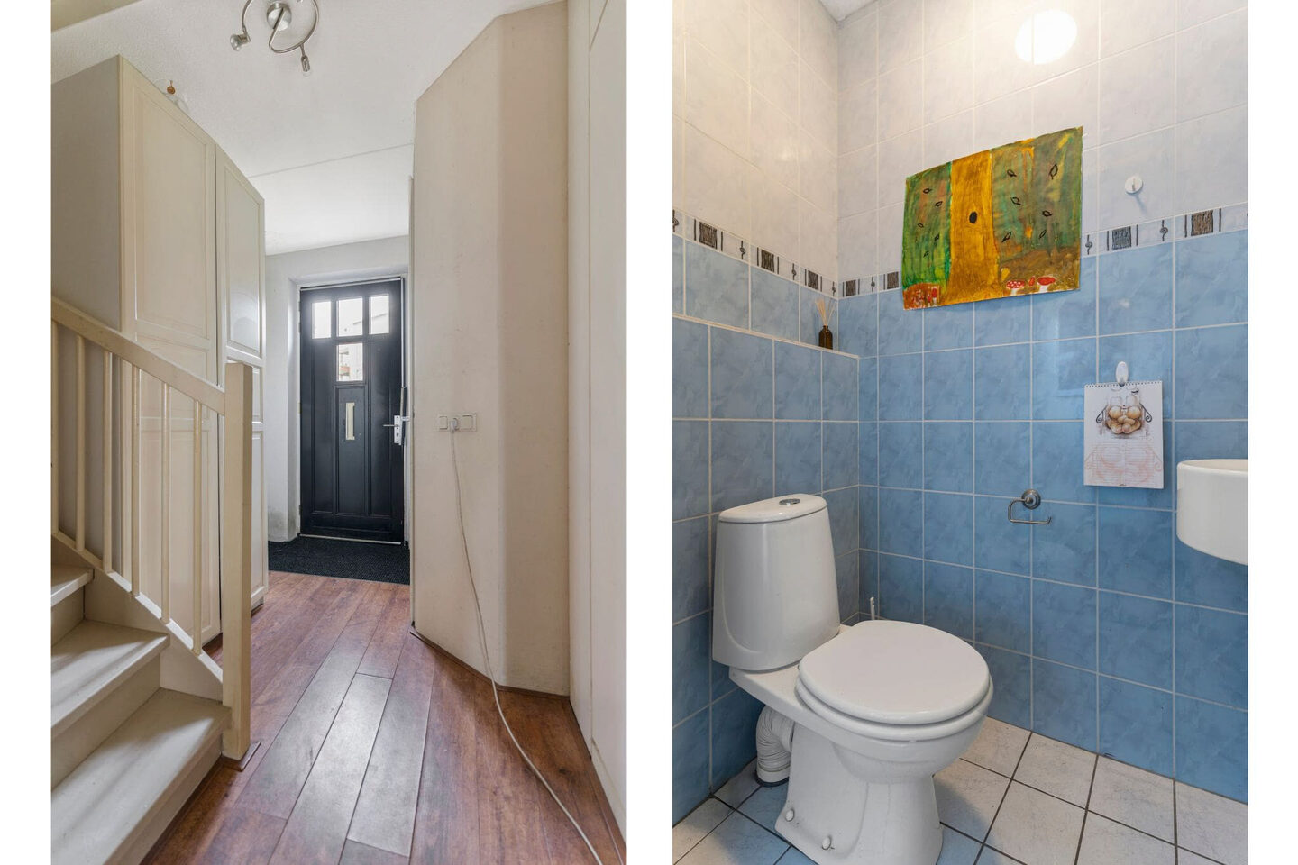Bij binnenkomst kom je in de hal met garderobekast, toilet en trapopgang. De woonkamer is licht en ruim, mede dankzij de uitbouw en de openslaande deuren naar de tuin. Vanuit de woonkamer is een praktische trapkast bereikbaar. Via een tochtportaal is er ook een tweede achterdeur naar de tuin.