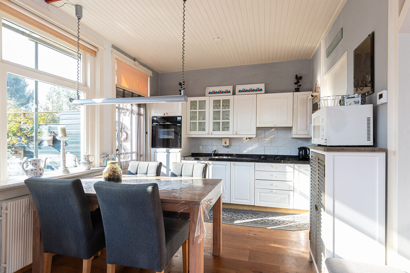 Via de entree bereik je de sfeervolle woonkamer met open keuken. De ruimte voelt warm en huiselijk aan, met volop lichtinval en directe toegang tot het aangrenzende dakterras — ideaal voor een kop koffie in de ochtendzon of een zomerse borrel met uitzicht over de tuin.