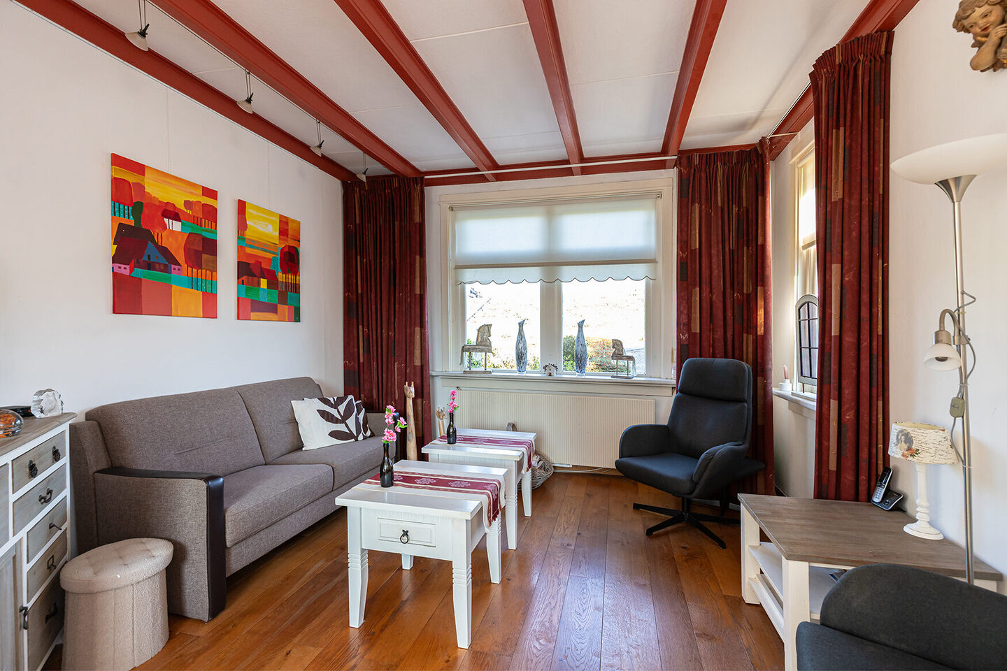 Op de verdieping bevinden zich drie slaapkamers, een toilet en een overloop met wastafel en toegang tot een balkon. Vanuit hier heb je een prachtig uitzicht over het dorp en de omgeving van Groot-Ammers.