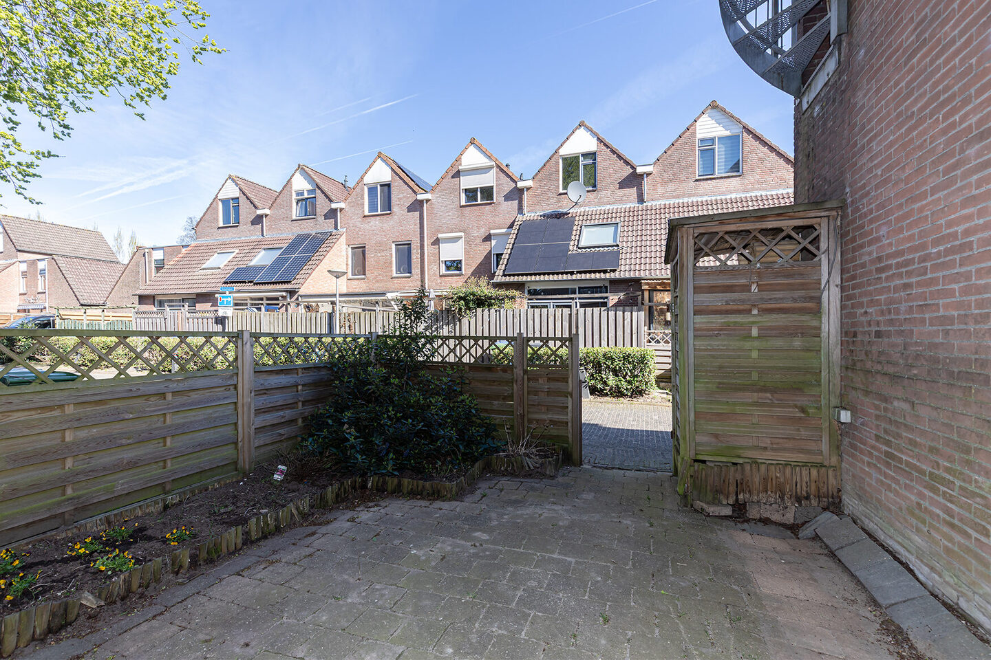 Aan de voorzijde van de woning bevindt zich een voortuin. De achtertuin biedt eveneens buitenruimte en is bereikbaar vanuit de woning. Voor de achtertuin geldt een recht van overpad, waardoor achtergelegen percelen toegankelijk blijven.