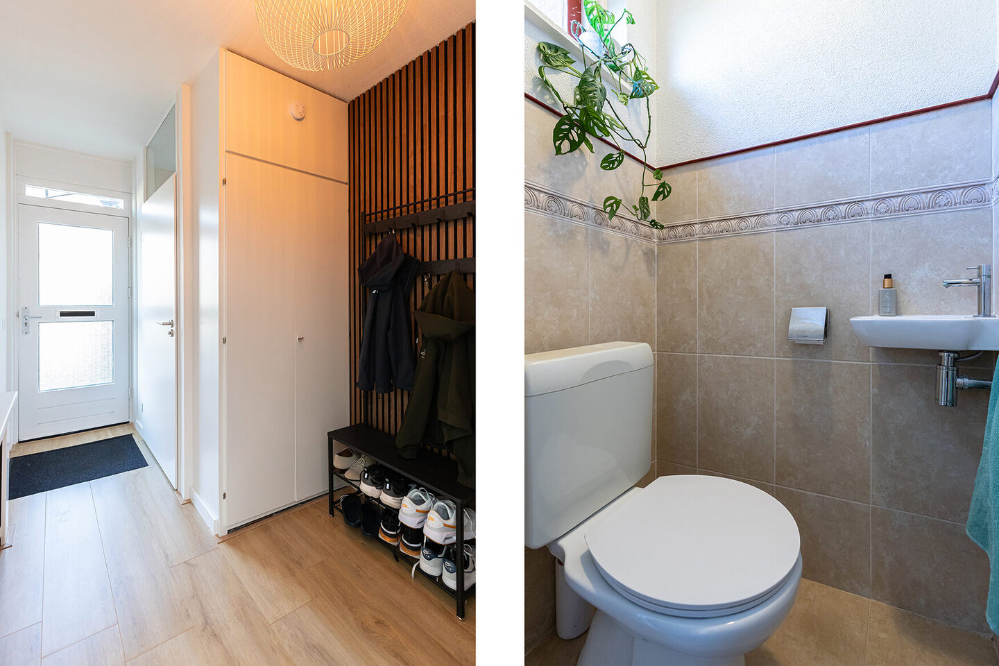 Op de eerste verdieping zijn drie slaapkamers aanwezig. Alle kamers zijn functioneel in te delen en geschikt voor gebruik als slaap-, werk- of hobbyruimte. De gehele verdieping is afgewerkt met een laminaatvloer in houtkleur. De badkamer is voorzien van inbouwspots en uitgerust met een inloopdouche/douchecabine, een dubbele wastafel en een wastafelmeubel.