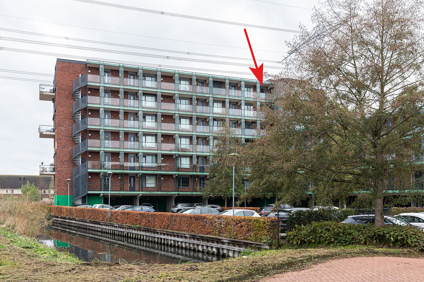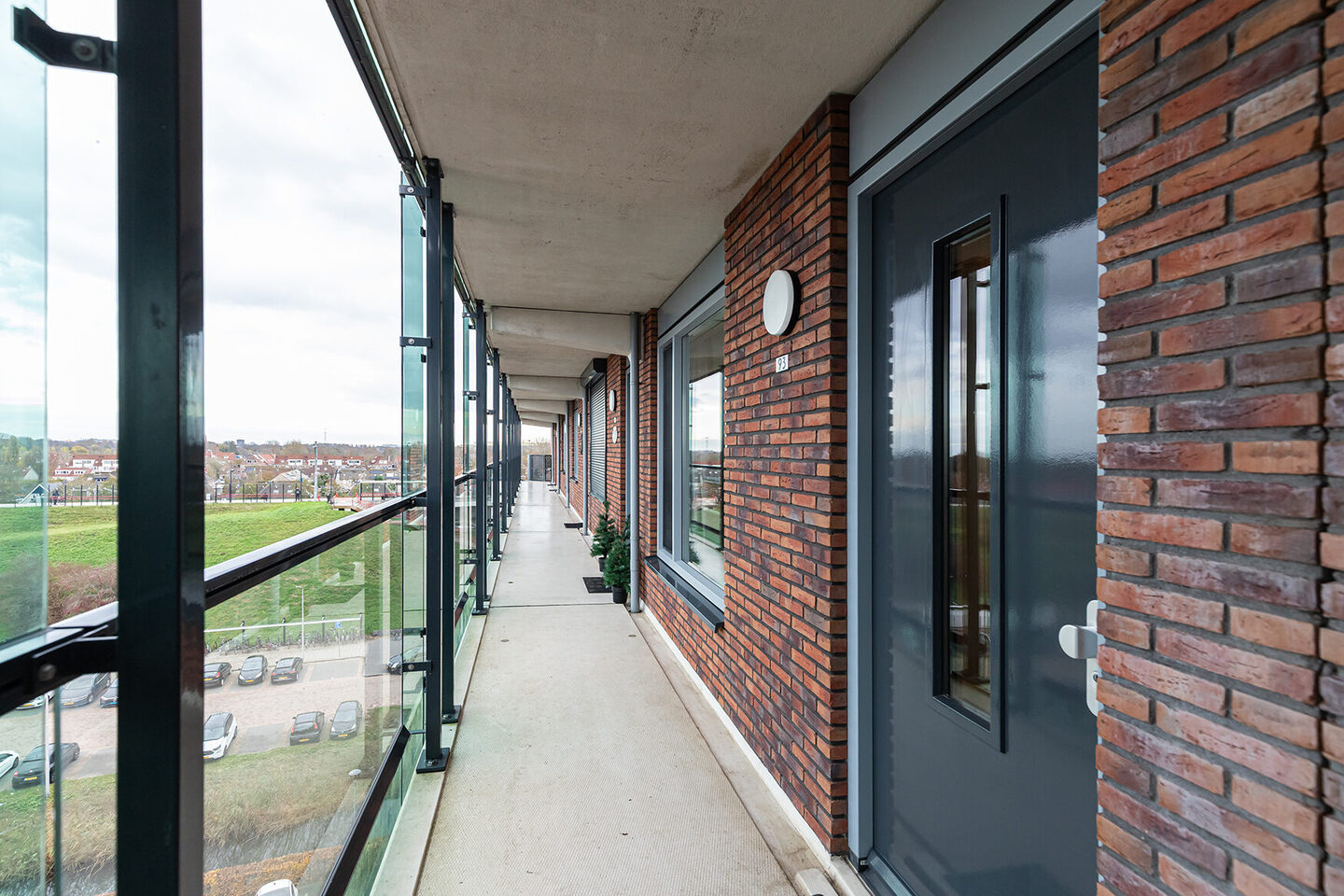 De centrale entree van het gebouw maakt meteen indruk door de nette afwerking en de praktische inrichting. De lift, het trappenhuis, de videofooninstallatie en de postkasten zorgen voor een veilige en comfortabele binnenkomst. Bij het appartement hoort een eigen overdekte parkeerplaats op het afgesloten parkeerterrein, bereikbaar via een slagboom die met afstandsbediening te openen is. Daarnaast is er een privéberging, direct naast de lift, ideaal voor fietsen of opslag.