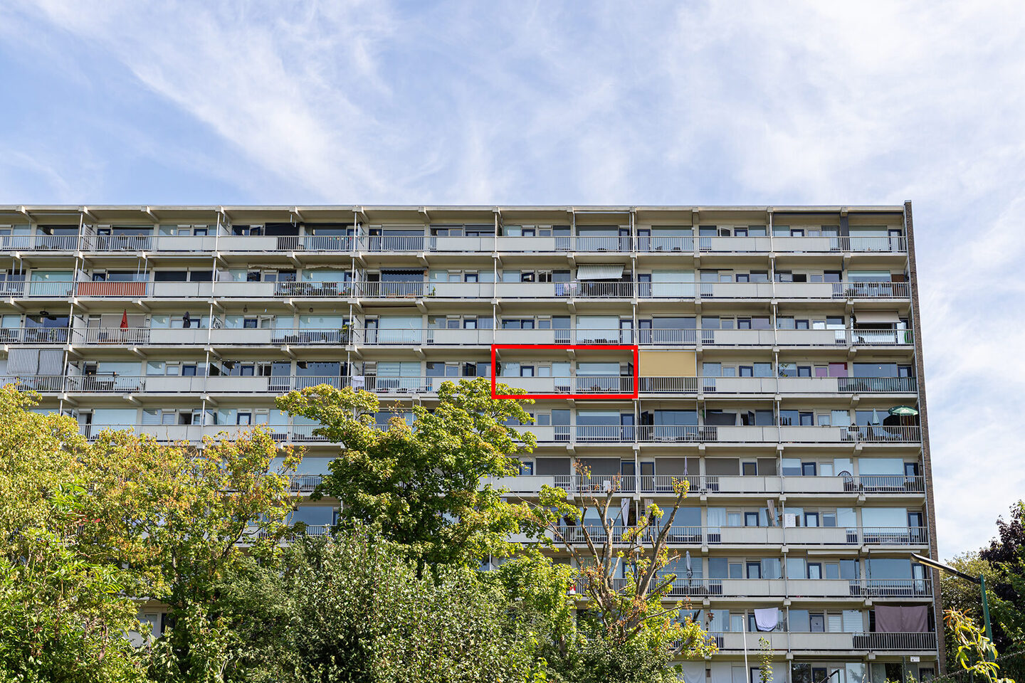 De slaapkamer biedt direct toegang tot het balkon aan de westzijde, waar je ’s avonds van de zon en het uitzicht kunt genieten. Het balkon is smaakvol ingericht (inrichting is ter overname), waardoor het voelt als een verlengstuk van de woonruimte. Daarbij komt een berging in de onderbouw met elektra – ideaal voor opslag of extra ruimte.