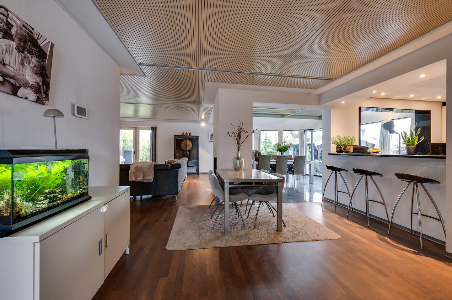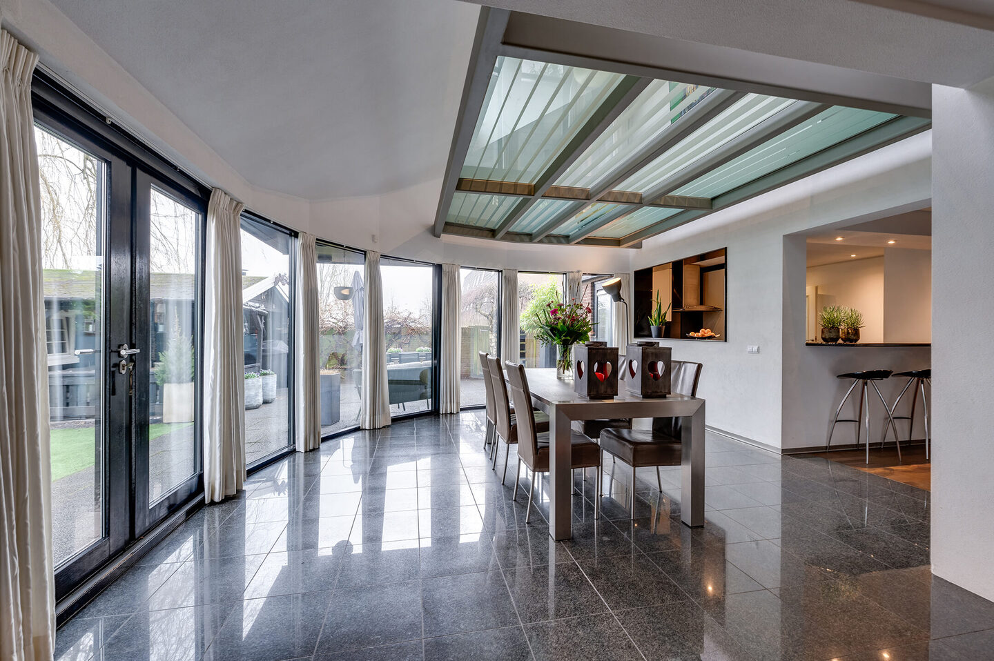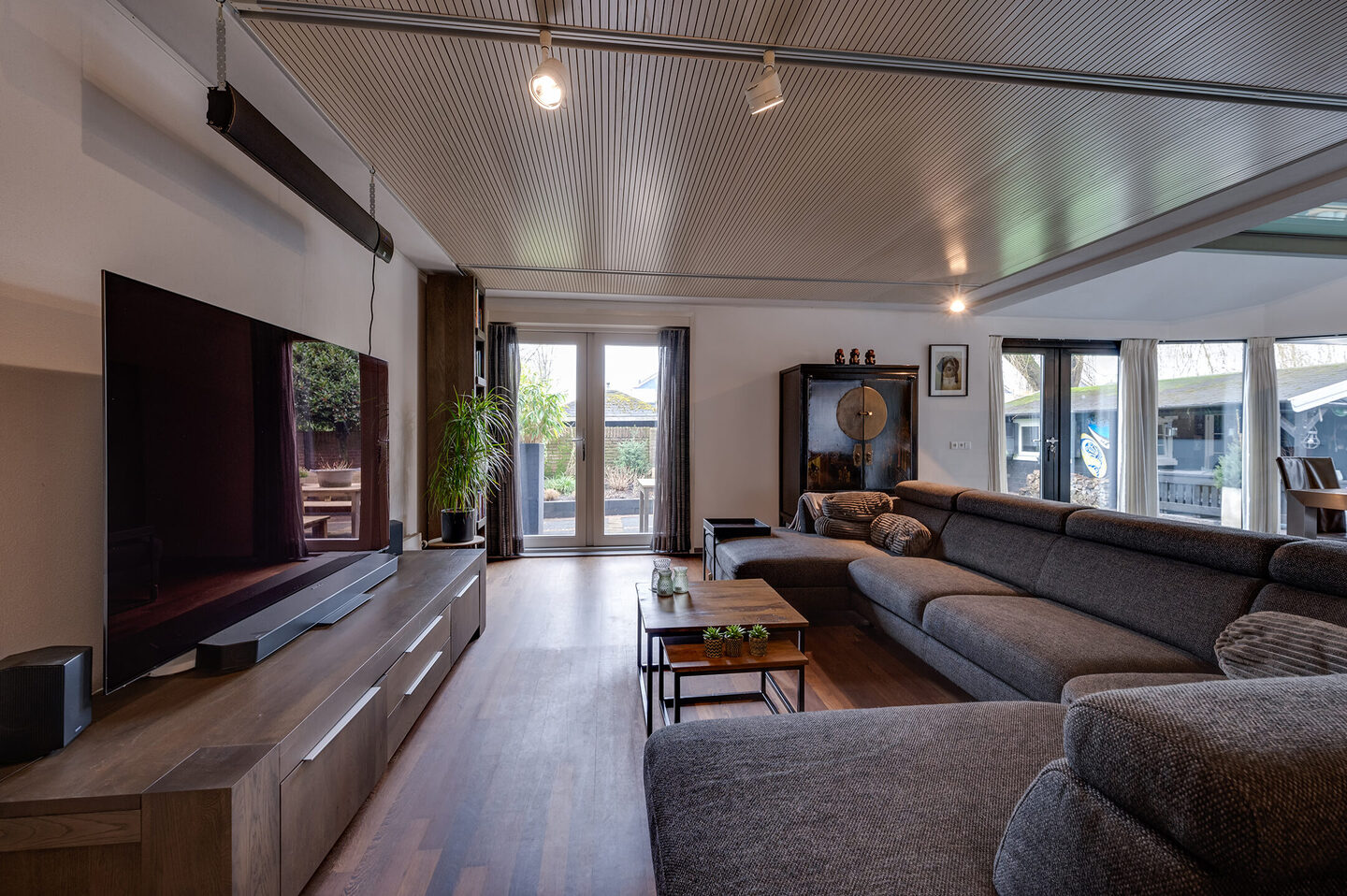 Welkom in deze prachtige geschakelde patiowoning van maar liefst 235 m², waar comfort, design en licht samenkomen. De woning is speels ingedeeld en voelt dankzij de vele raampartijen en kamerhoge ramen heerlijk ruimtelijk en licht. De woonkamer is een echte eyecatcher. De royale serre met kamerhoge ramen vormt het perfecte decor voor lange avonden aan de eettafel met familie en vrienden. De gashaard, vloerverwarming en subtiele inbouwspotjes zorgen voor een warme, luxe sfeer. De openslaande deuren brengen je direct naar de zonnige tuin op het zuidoosten. Hier vind je meerdere gezellige zitplekken, een houten tuinhuis met overkapping (nu een knusse man cave) en een prachtig vrij uitzicht over het water.