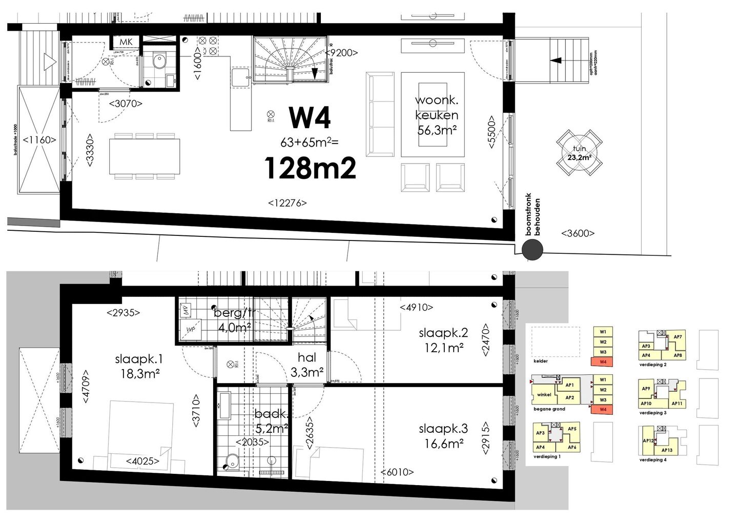 Aan de voorkant van het wooncomplex ervaar je de bruisende stad. Achter de monumentale gevel beleef je een oase van rust, dankzij de sfeervolle binnentuin, binnenhof en de groendaken; het beste van twee werelden. In deze binnentuin bevinden zich ook je eigen buitenberging en de parkeerplaatsen.
