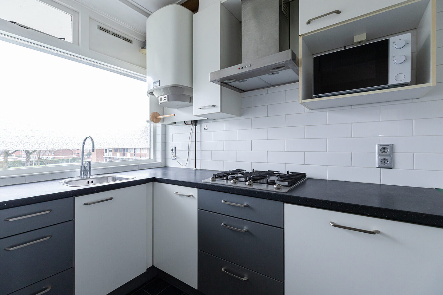 Het appartement beschikt momenteel over twee slaapkamers. De grootste slaapkamer biedt direct toegang tot het balkon, waar je op het westen heerlijk kunt genieten van de middag- en avondzon, met vrij uitzicht over groen. De tweede slaapkamer is een fijne, goed bruikbare kamer die zich uitstekend leent als slaap-, werk- of hobbyruimte. Oorspronkelijk had het appartement drie slaapkamers; deze indeling is desgewenst eenvoudig weer te herstellen.
