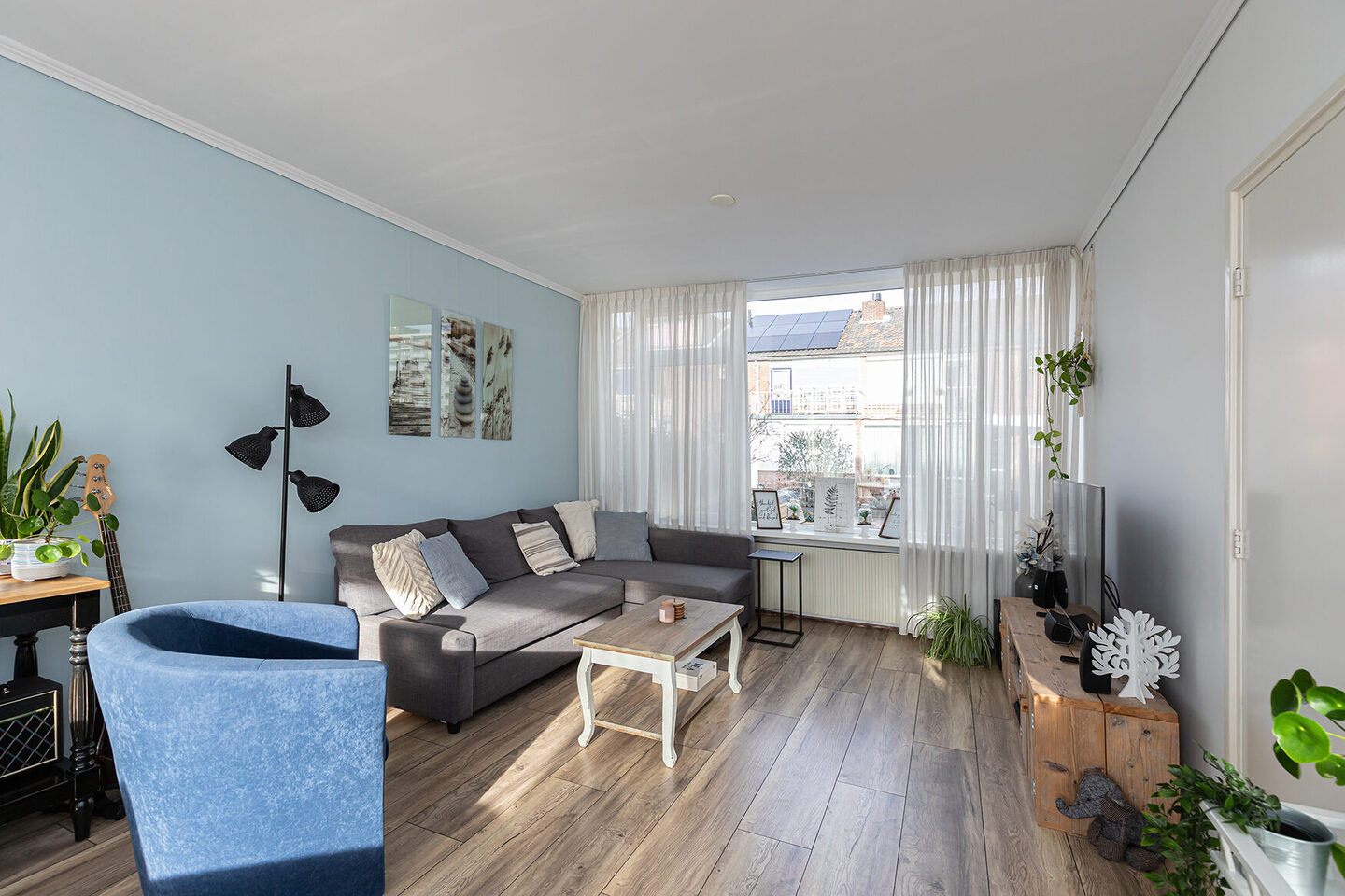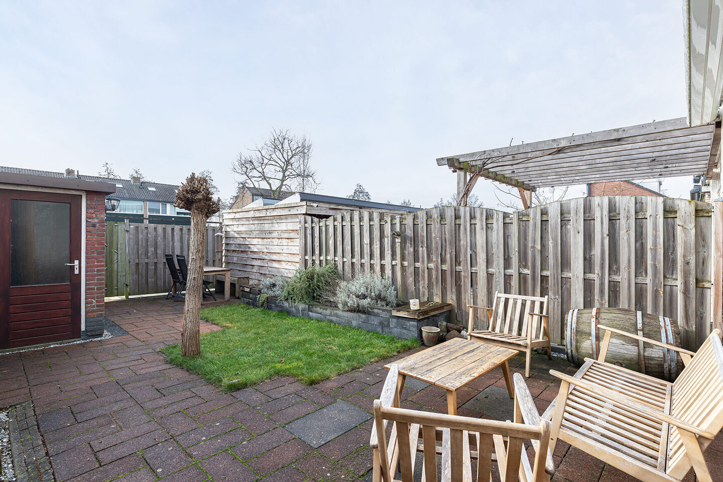 Deze verzorgde eengezinswoning combineert comfort, licht en een prettige buitenruimte met een moderne afwerking. De voortuin is strak en eigentijds aangelegd, met ruimte voor een gezellig bankje en groen in plantenbakken, een uitnodigende entree die direct de juiste sfeer neerzet. Achter de woning ligt een zonnige tuin op het zuidwesten, waar je tot in de avond van de zon kunt genieten.