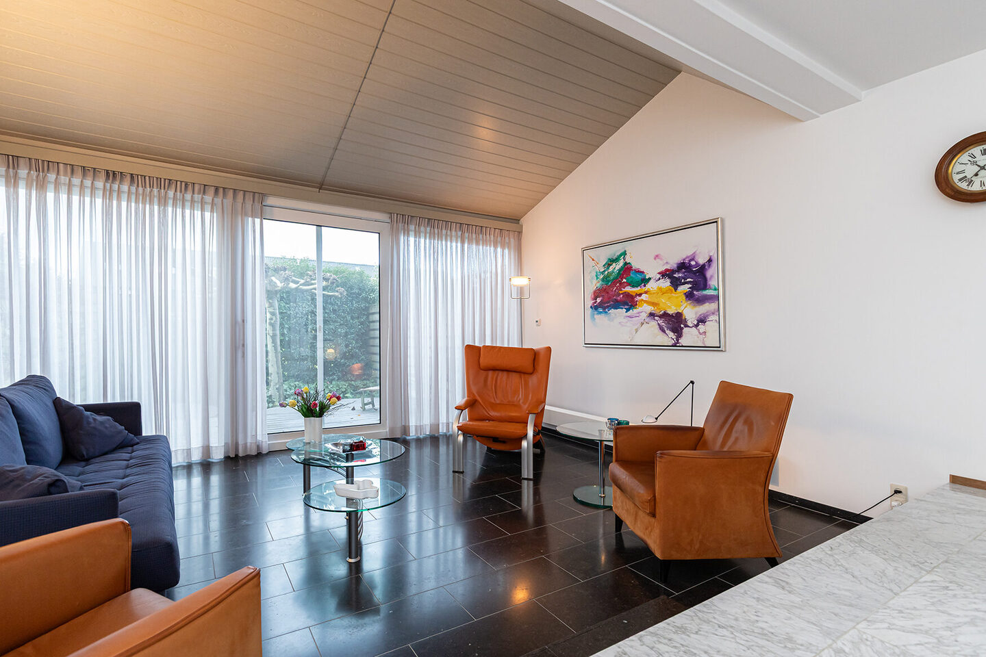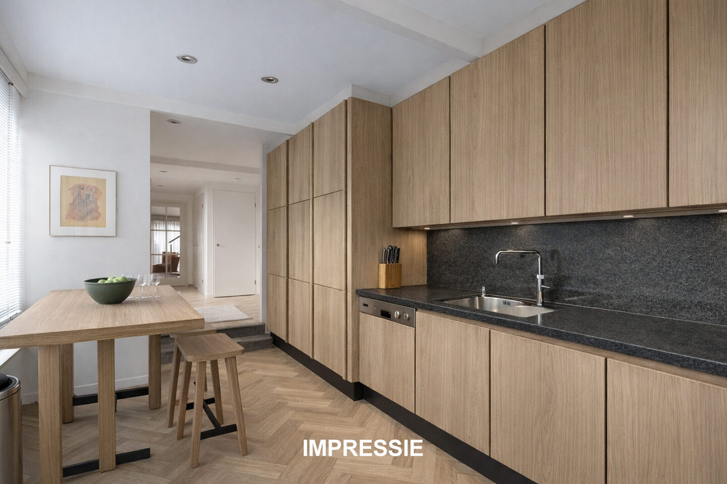 Via de entree stap je binnen in een leefruimte die direct indruk maakt. Doordat de keuken naar de voorzijde is verplaatst, is de woonkamer uitgegroeid tot een meer dan royale living. Aan de achterzijde vind je een zitkuil met Belgisch hardsteen, perfect voor ontspannen avonden of gezellige borrels. De woningbrede schuifpui zorgt voor een prachtige lichtval en een directe verbinding met de tuin.