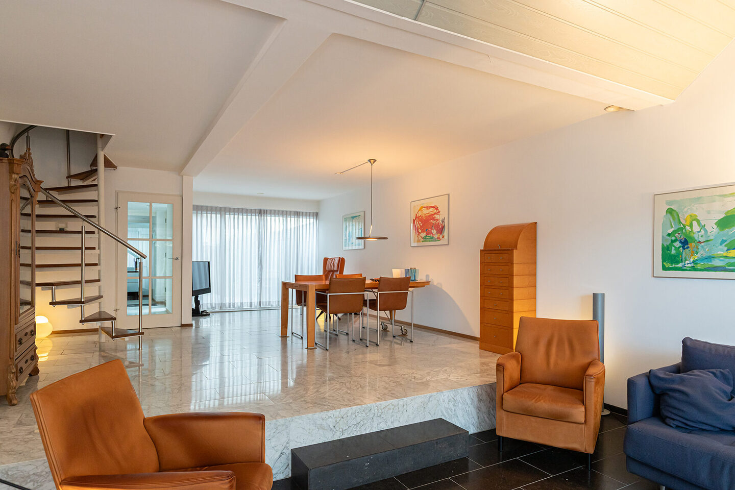 De afwerking is van hoog niveau. Een marmeren vloer in combinatie met vloerverwarming in de keuken en woonkamer zorgt voor stijl, comfort en een tijdloze uitstraling. De wanden en plafonds zijn strak gestuukt.